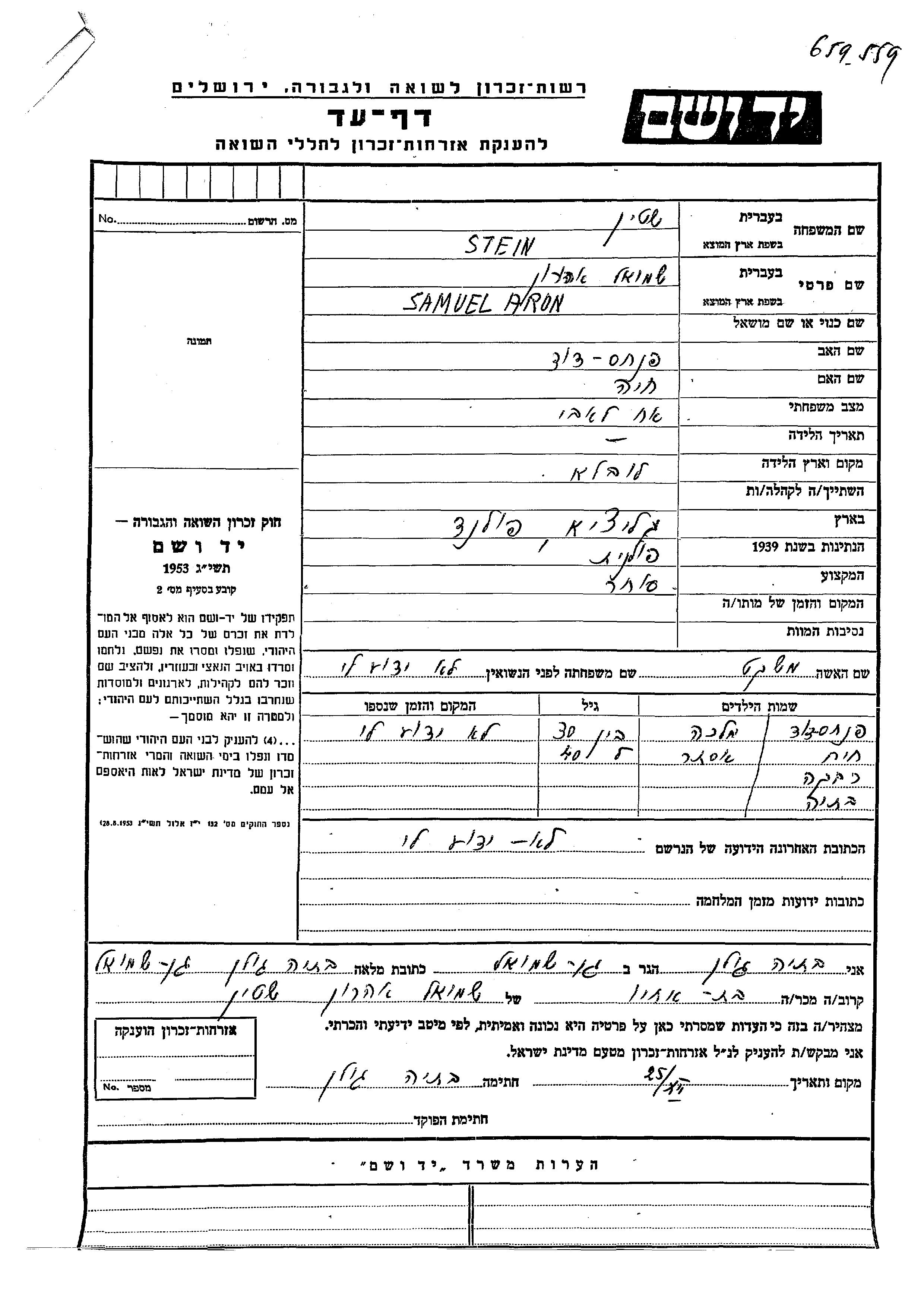 Batia Stein wurde Sie war die Tochter von Aron Shmuel und Miriam. Sie war Kind. Vor dem Zweiten Weltkrieg lebte sie in Lubla, Polen.
