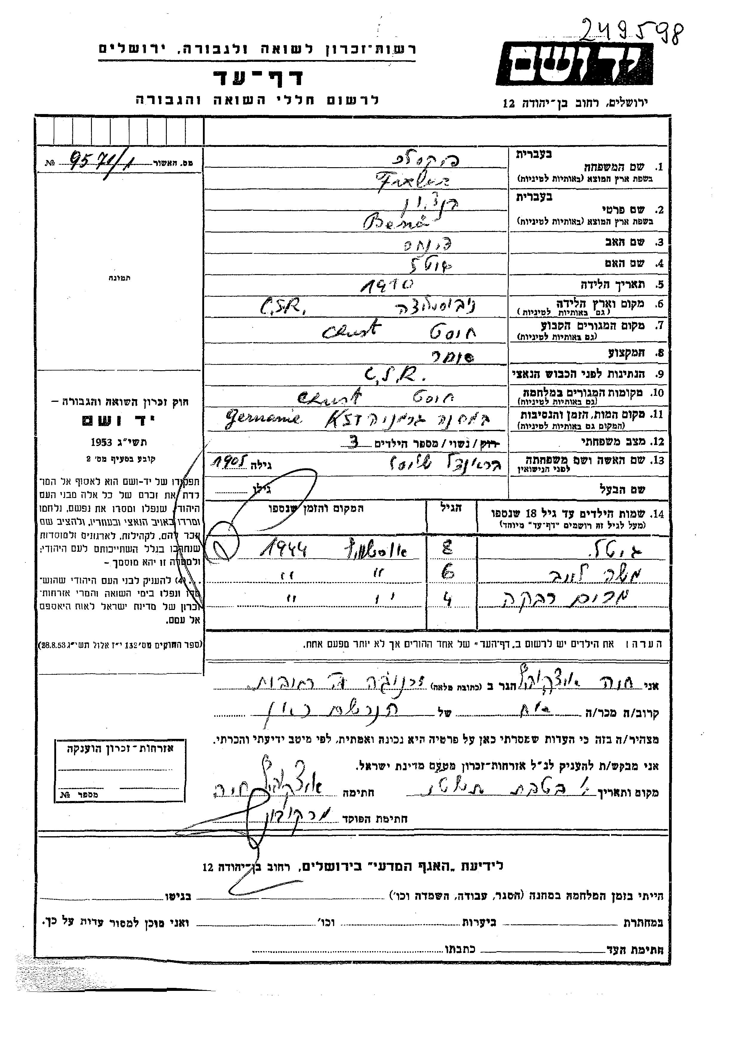 Gitel Fixler wurde Sie war die Tochter von Beno Bentzion und Brandl, geb. Shlisel. Sie war Kind. Vor dem Zweiten Weltkrieg lebte sie in Chust, Tschechoslowakei. Während des Krieges war sie in Chust, Tschechoslowakei.