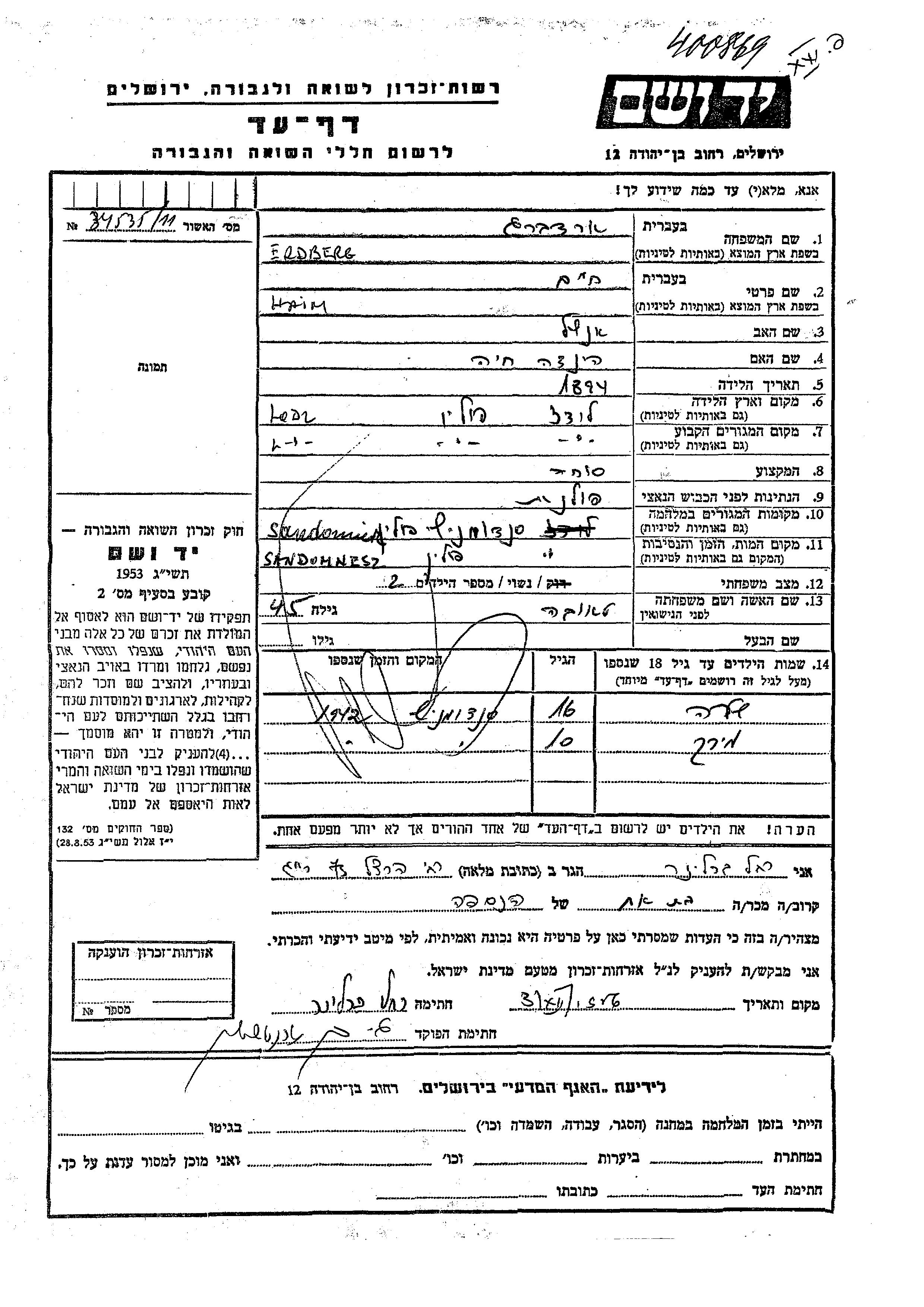 Mark Erdberg wurde Er war der Sohn von Haim und Tauba. Er war Kind. Vor dem Zweiten Weltkrieg lebte er in Lodz, Polen. Während des Krieges war er in Sandomierz, Polen.