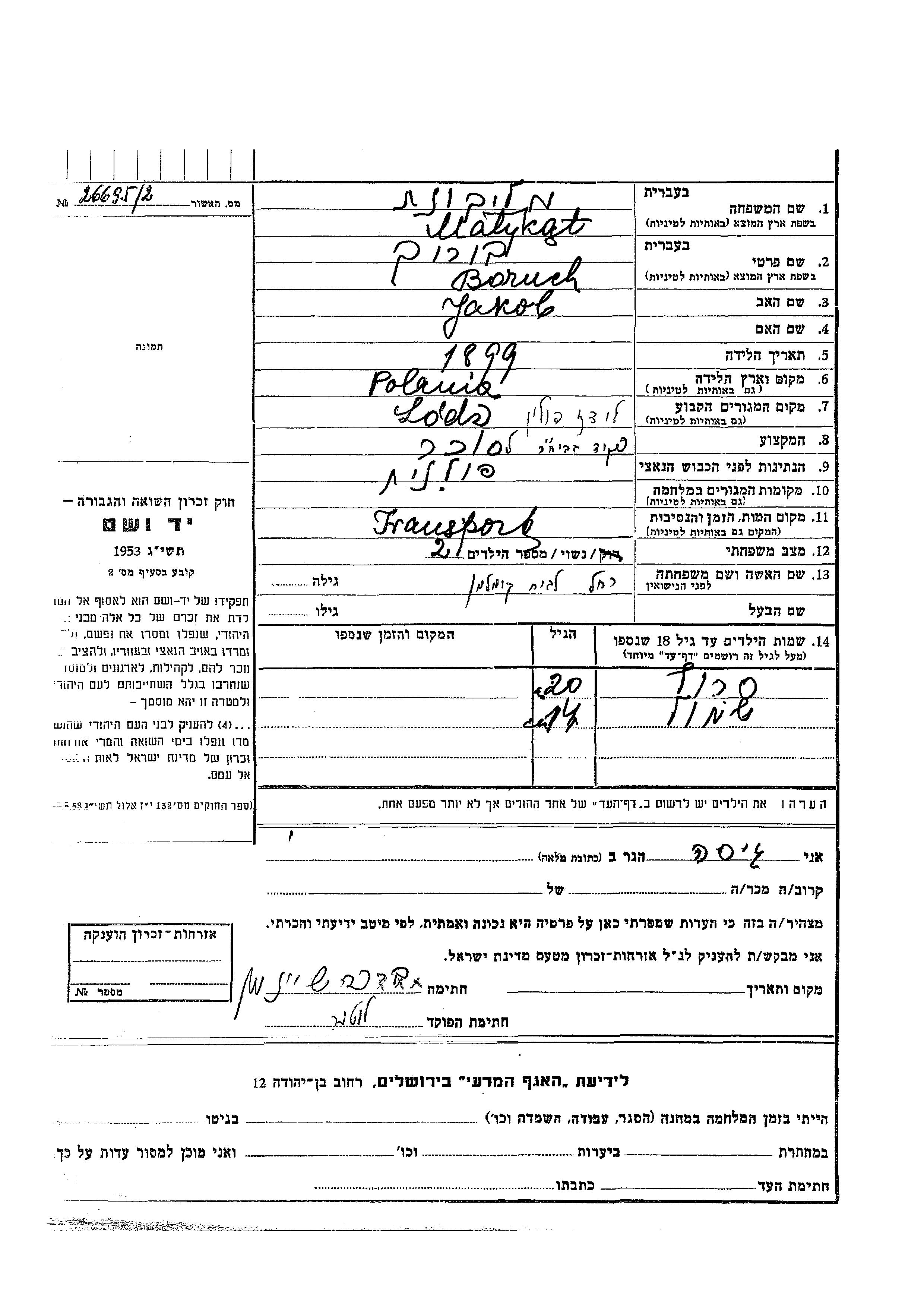 Shmul Malykat wurde Er war der Sohn von Barukh und Rakhel, geb. Kimelman. Er war Kind. Vor dem Zweiten Weltkrieg lebte er in Lodz, Polen. Während des Krieges war er in Lodz, Polen.
