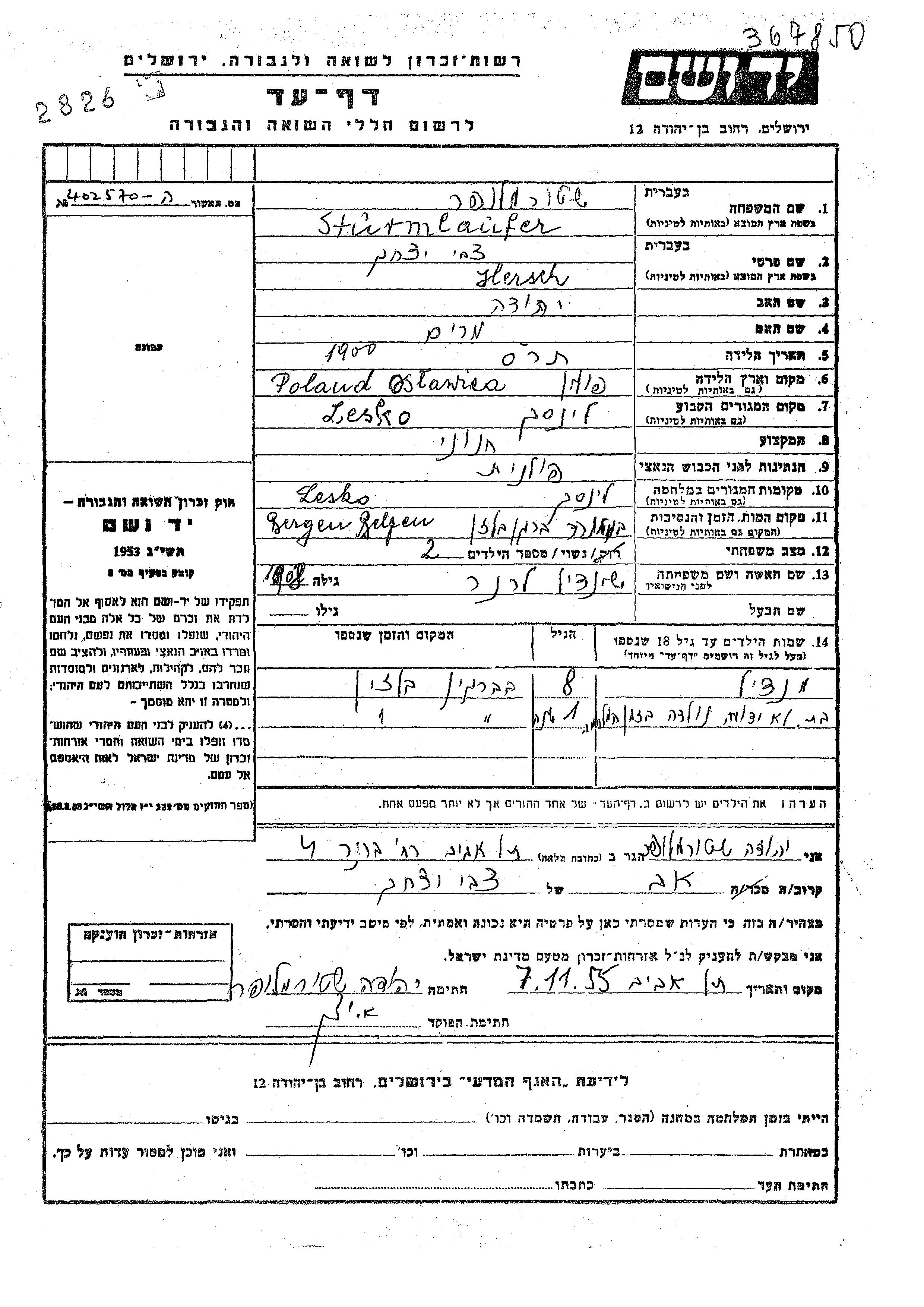 Vorname unbekannt Sturmlaufer wurde Er/sie war der/ die Sohn/Tochter von Hersch Tzvi Yitzkhak und Sheina, geb. Lerner. Er/Sie war Kind. Vor dem Zweiten Weltkrieg er/sie in Lesko, Polen. Während des Krieges war er/sie in Lesko, Polen.