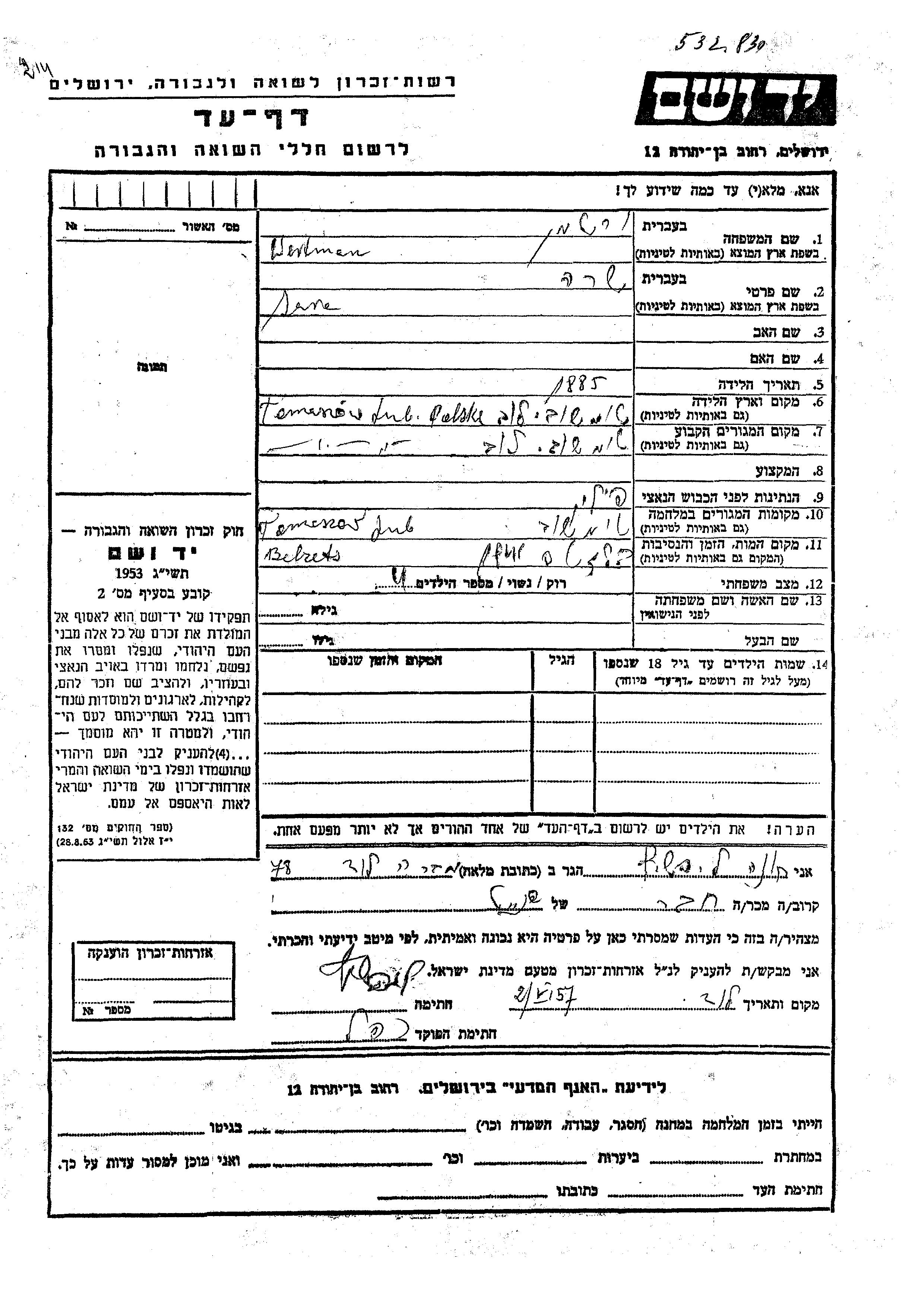 Sara Wertman Vartman wurde im Jahr 1885 in Tomaszow Lubelski, Polen geboren. Vor dem Zweiten Weltkrieg lebte sie in Tomaszow Lubelski, Polen. Während des Krieges war sie in Tomaszow Lubelski, Polen.