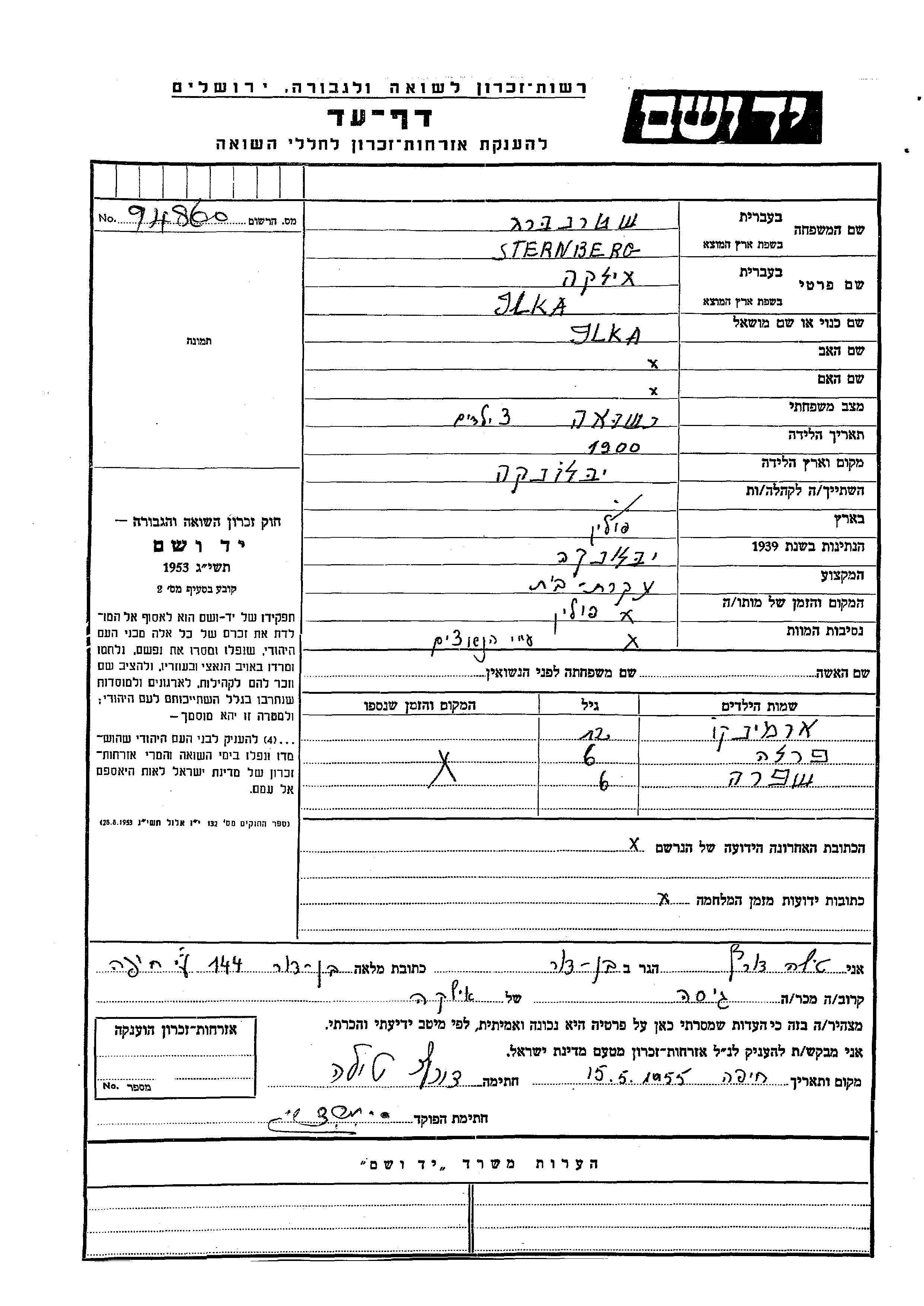 Hermina Sternberg wurde Sie war die Tochter von Ilka Ilka. Sie war Kind. Vor dem Zweiten Weltkrieg lebte sie in Polen.