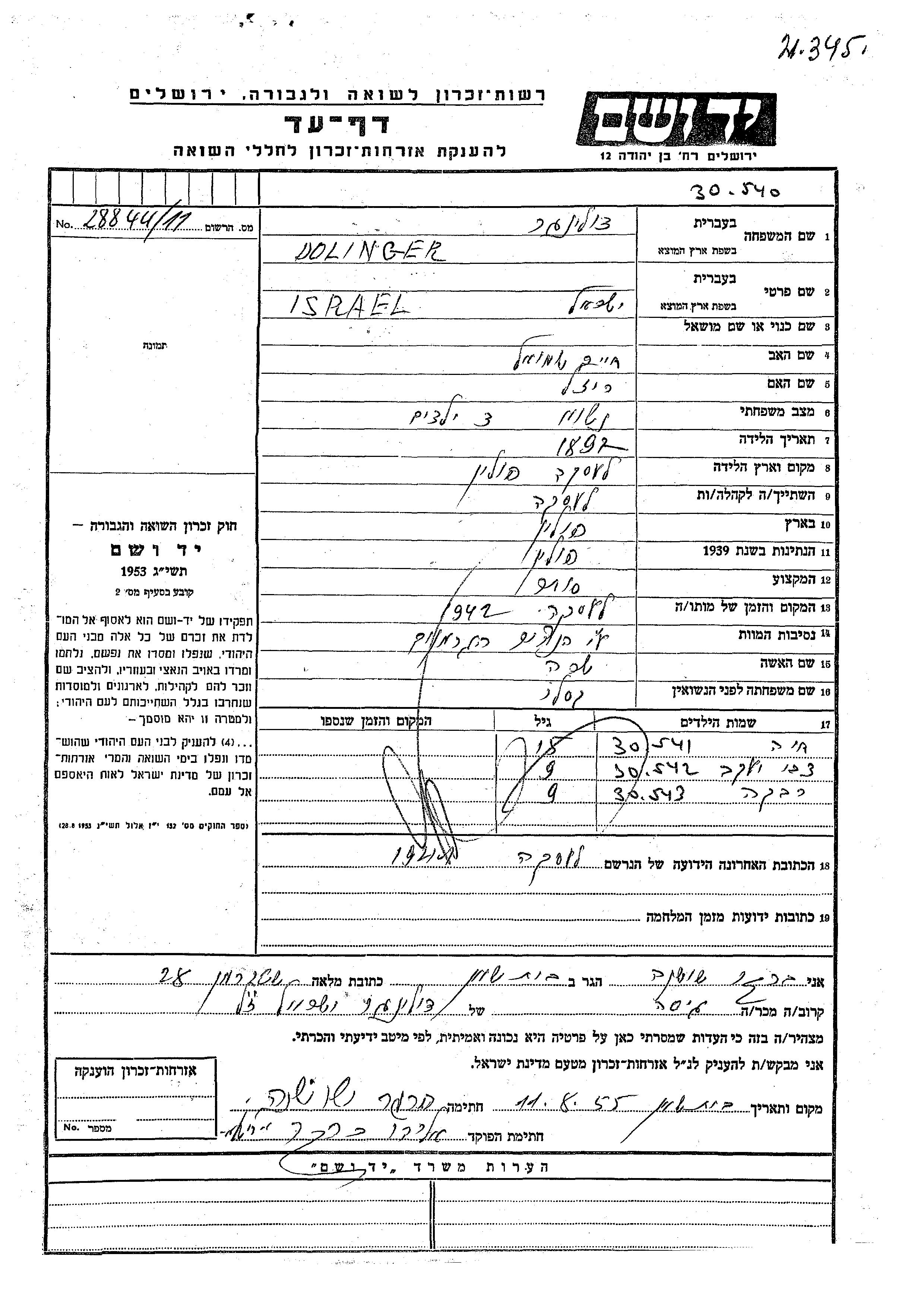 Khaia Volinger Tzolinger wurde Sie war die Tochter von Israel und Sara, geb. Kesler. Sie war Kind. Vor dem Zweiten Weltkrieg lebte sie in Lesko, Polen. Während des Krieges war sie in Lesko, Polen.