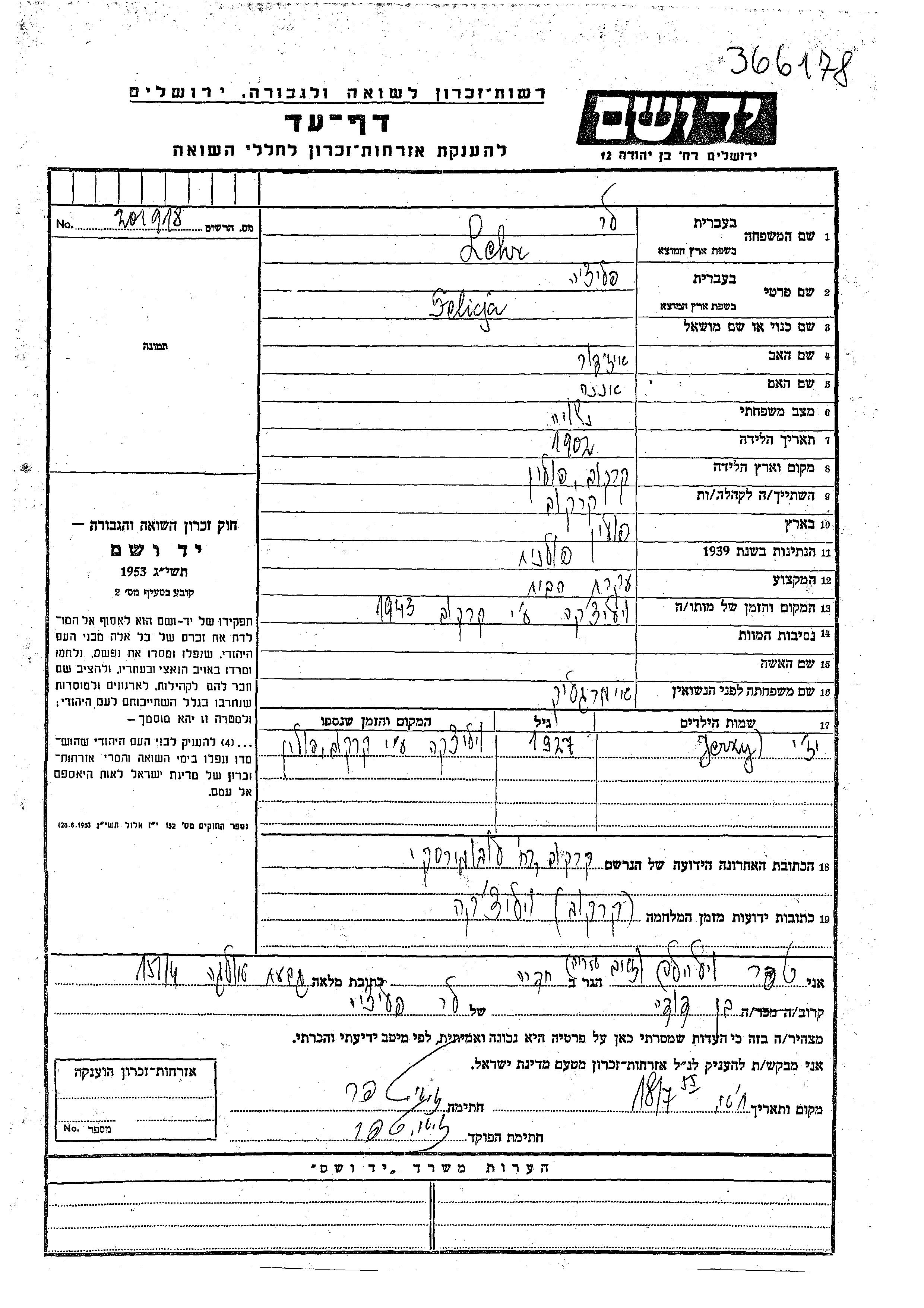 Jerzy Lehr wurde Er war der Sohn von Felicja, geb. Imerglik. Er war Kind. Vor dem Zweiten Weltkrieg lebte er in Krakow, Polen. Während des Krieges war er in Krakow, Polen.