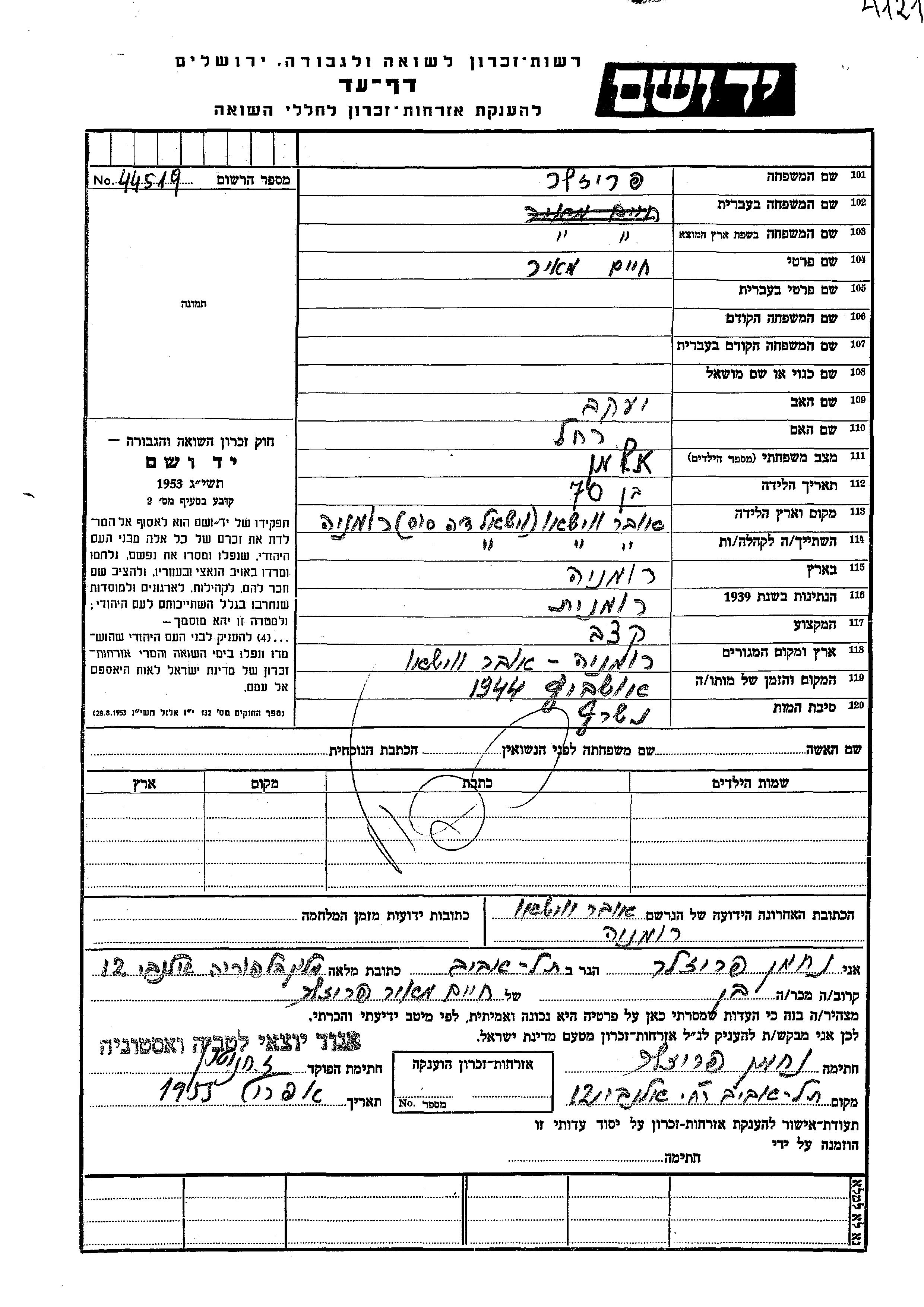 Rafael Frizler wurde Er war der Sohn von Khaim Meir. Er war Kind. Vor dem Zweiten Weltkrieg lebte er in Viseul de Sus, Rumänien. Während des Krieges war er in Viseul de Sus, Rumänien.