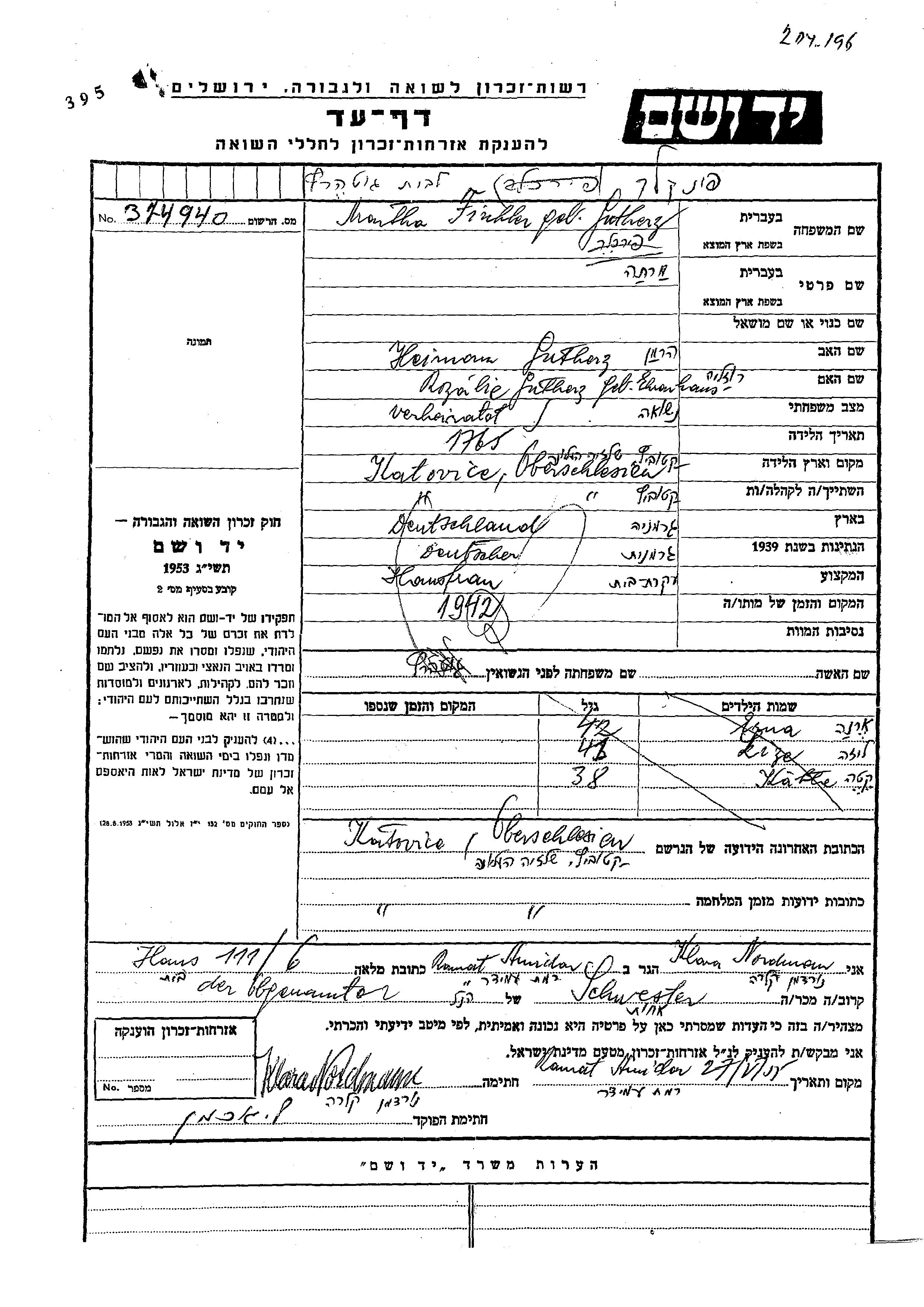 Lize Finkler wurde Sie war die Tochter von Marta, geb. Gutherz. Vor dem Zweiten Weltkrieg lebte sie in Katowice, Polen. Während des Krieges war sie in Katowice, Polen.