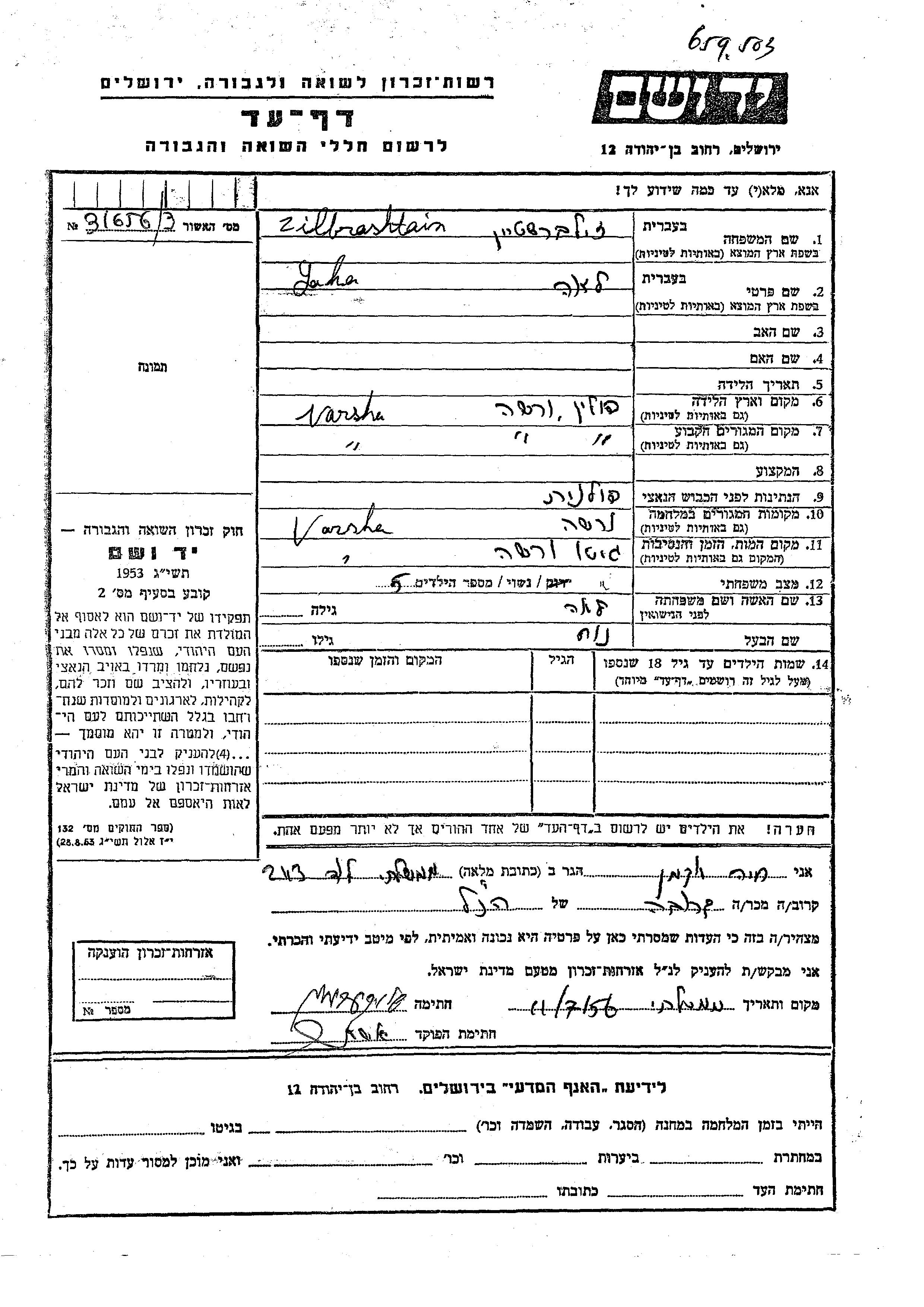 Zilbrashtain Laha Warszawa, Polen Gedenkblatt