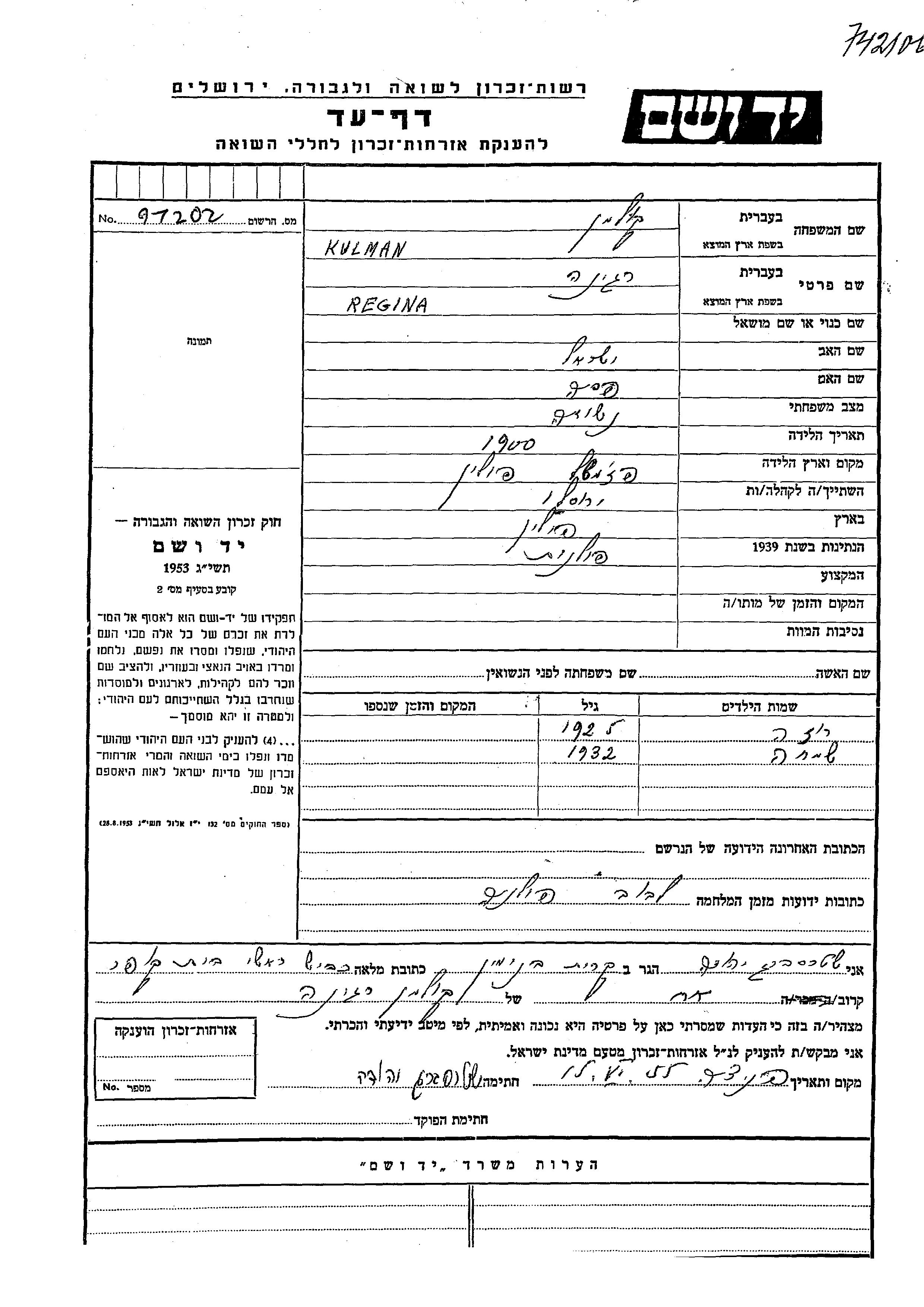 Roza Kulman Kolman wurde im Jahr 1925 geboren. Er/sie war der/ die Sohn/Tochter von Regina. Er/Sie war Kind. Vor dem Zweiten Weltkrieg er/sie in Polen.