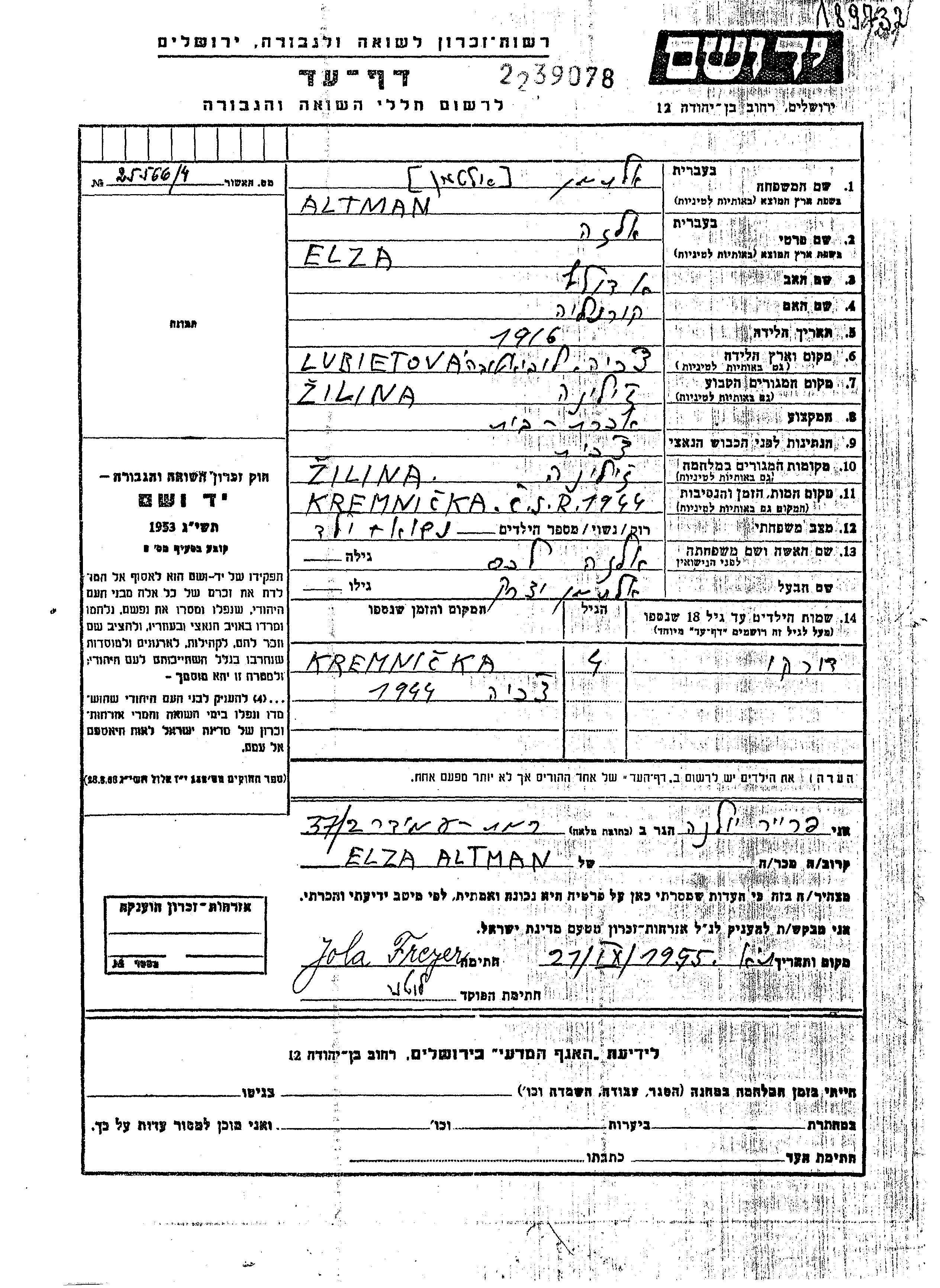 Durko Altman. Er war Kind. Vor dem Zweiten Weltkrieg lebte er in Zilina, Tschechoslowakei. Während des Krieges war er in Zilina, Tschechoslowakei.