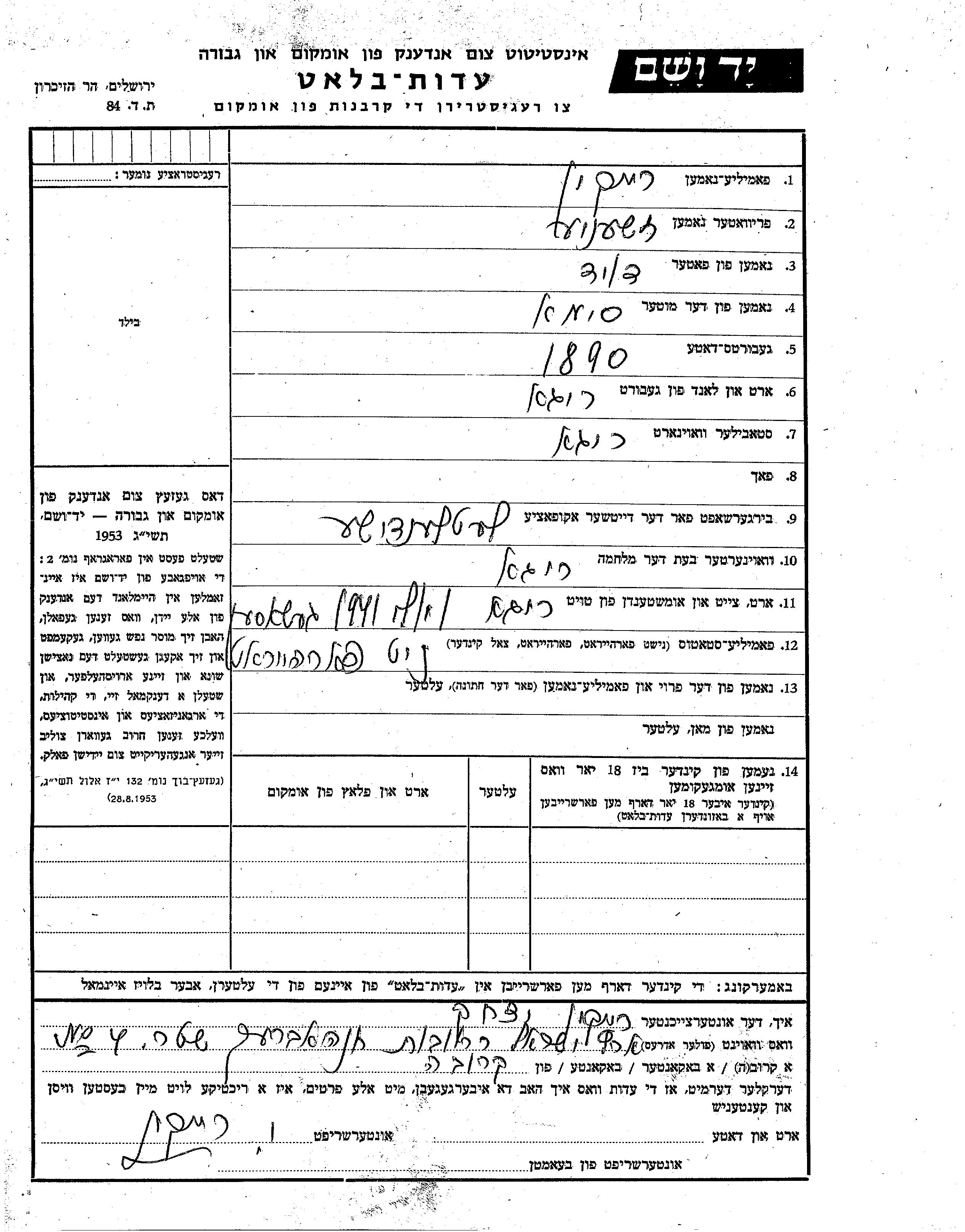 Raikin Eugenia 1890 Riga, Lettland Gedenkblatt