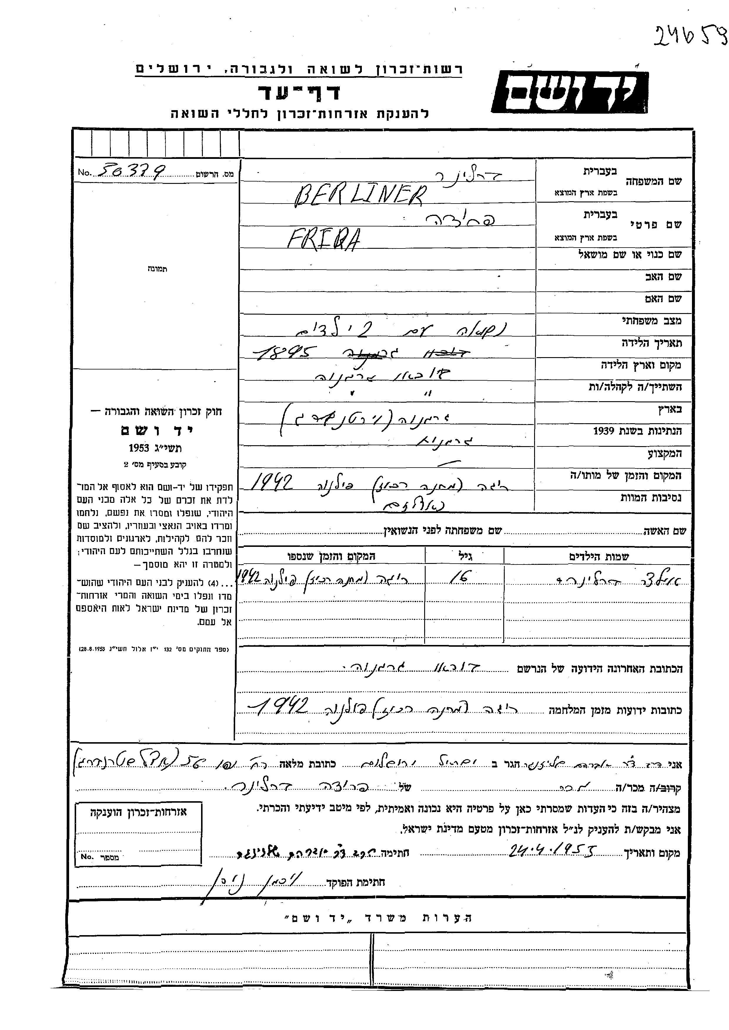 Yad Vashem - Gedenkblätter Sammlung