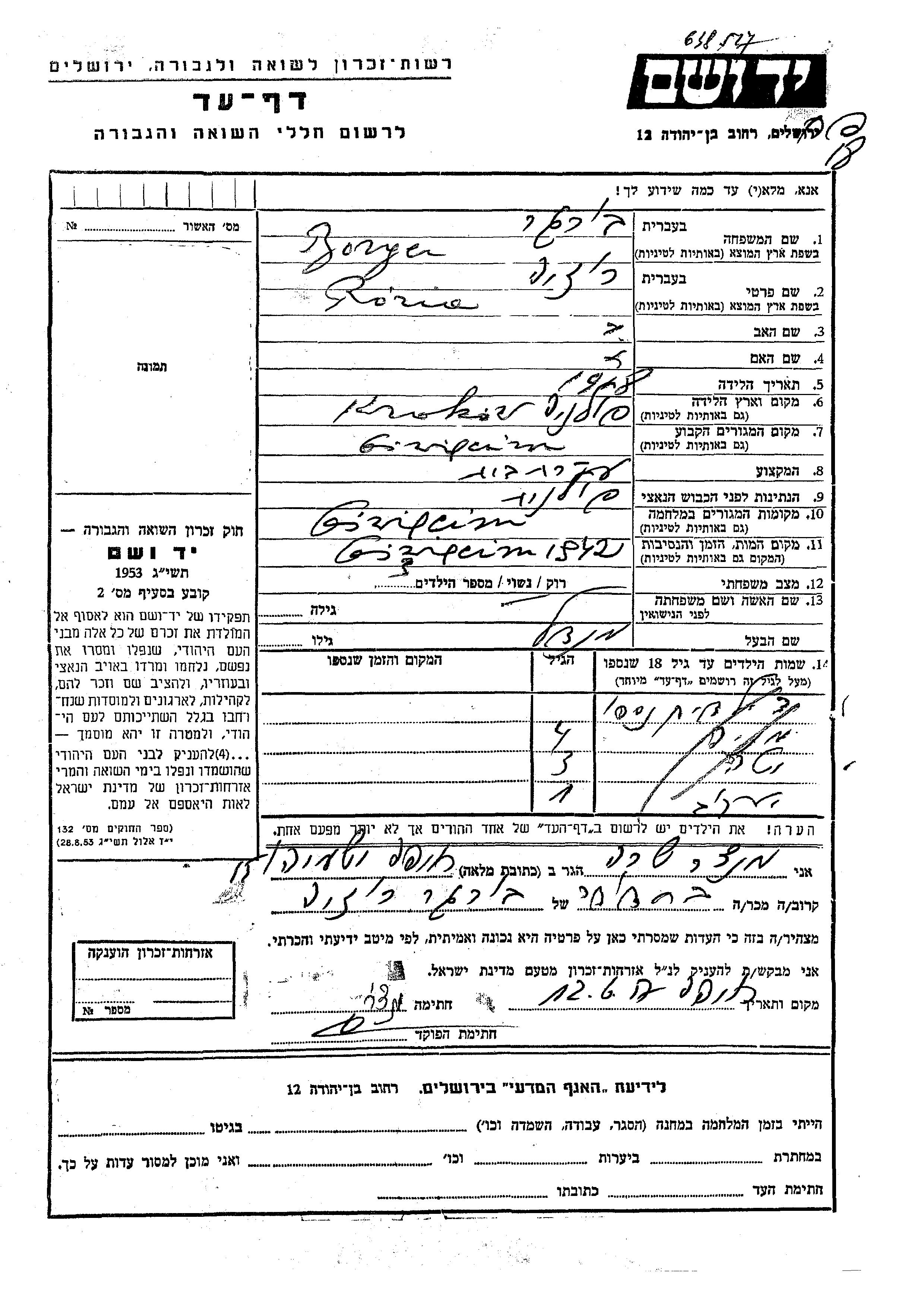 Yad Vashem - Gedenkblätter Sammlung