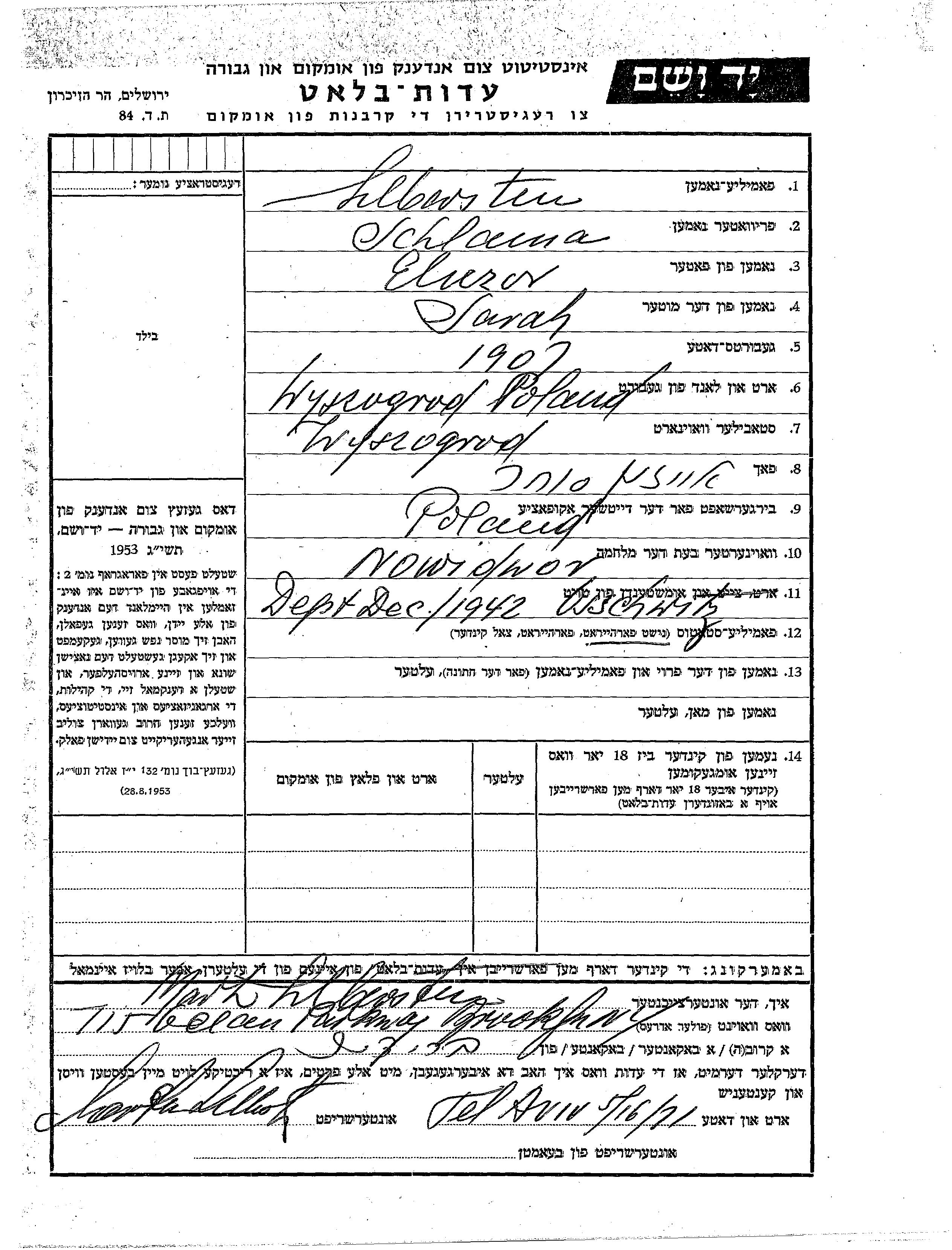 Schlama wurde in der Schoah ermordet. Todesort: Auschwitz, Polen im Jahr 12/1942.