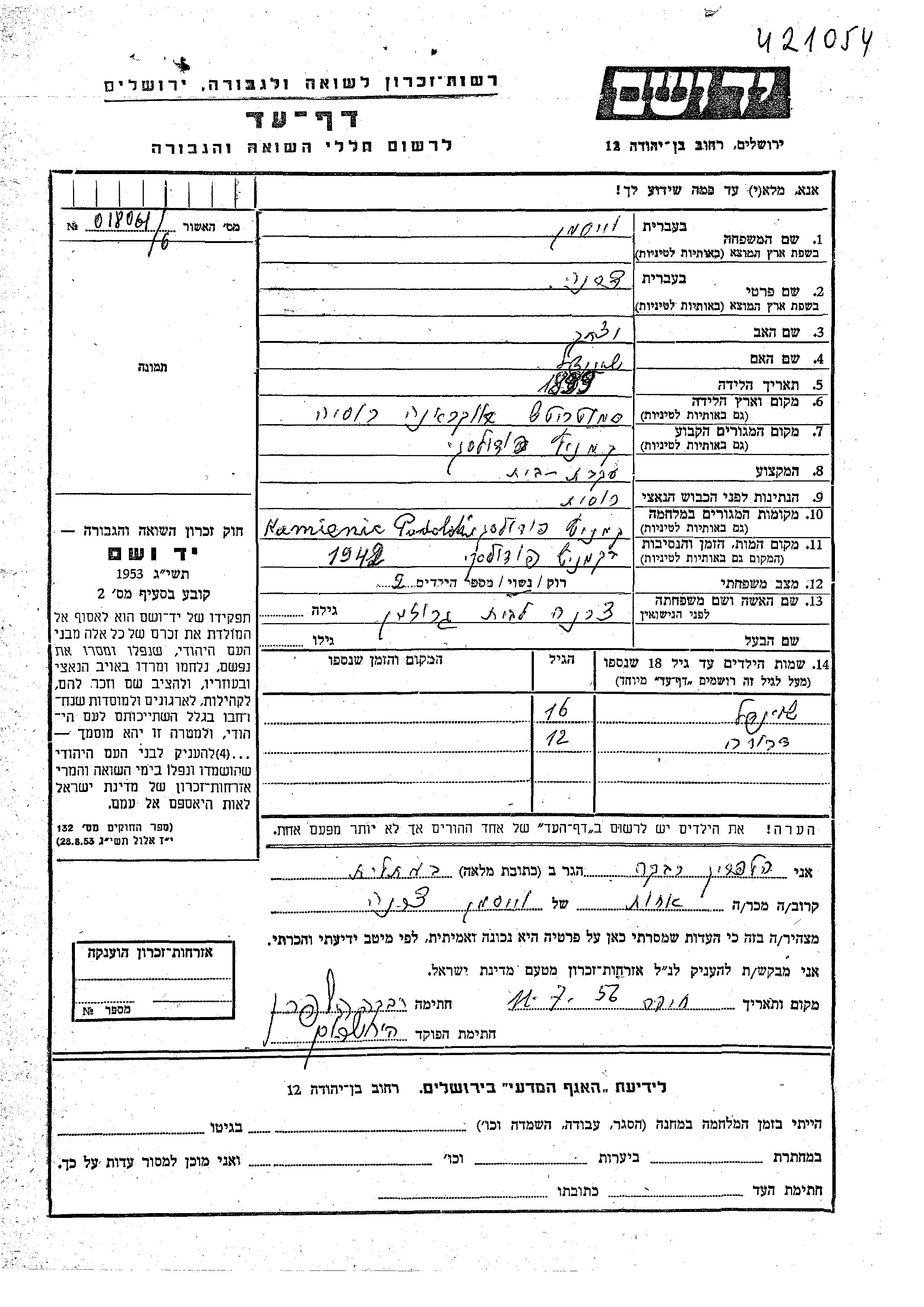 Veisman Dvora Kamieniec Podolski, Ukraine (UdSSR) Gedenkblatt