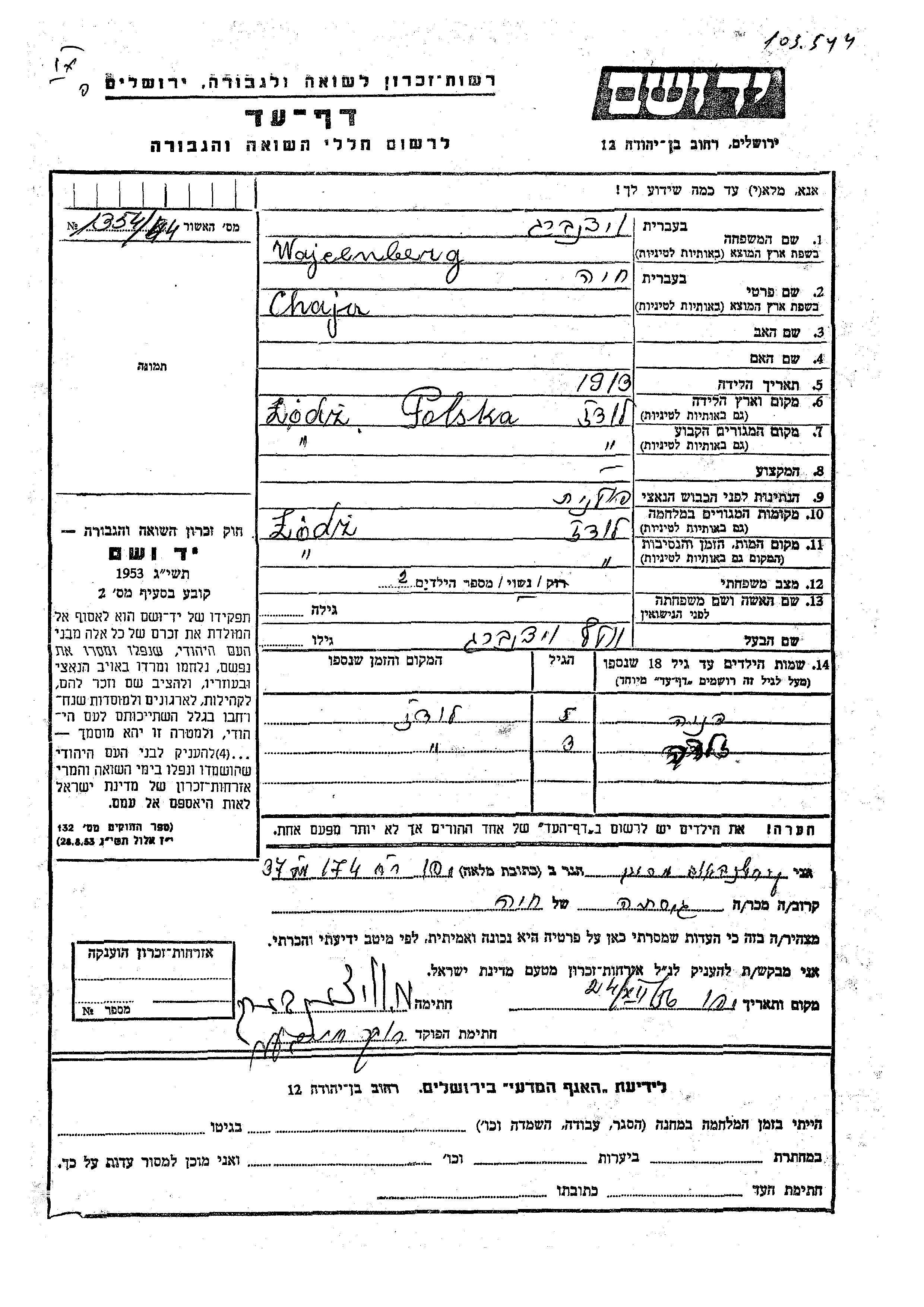 Wajcenberg Vitzenberg Zelda Lodz, Polen Gedenkblatt