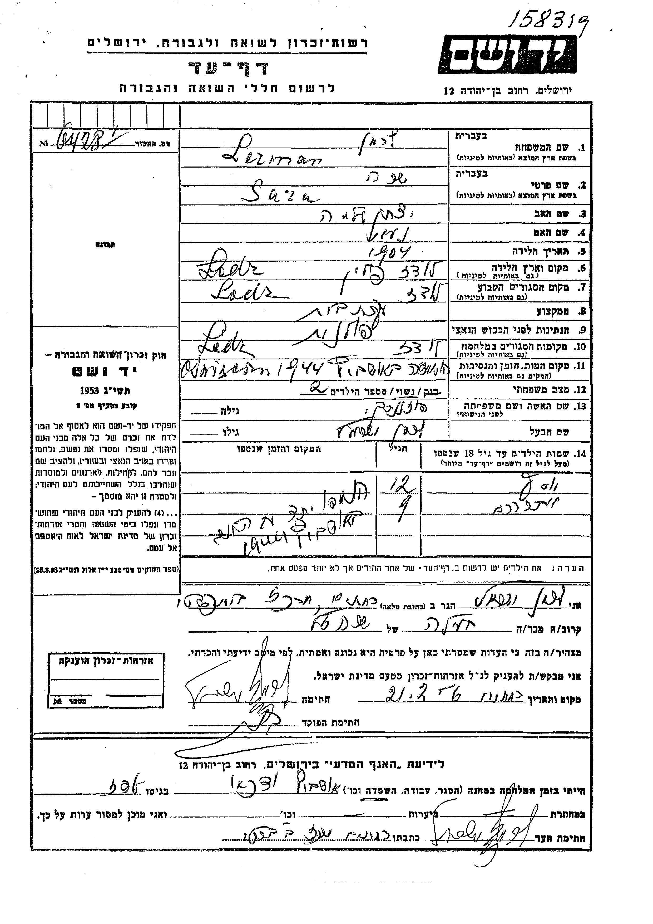 Yosef Lerman wurde Er war der Sohn von Yisrael und Sara, geb. Poznanski. Er war Kind. Vor dem Zweiten Weltkrieg lebte er in Lodz, Polen. Während des Krieges war er in Lodz, Polen.