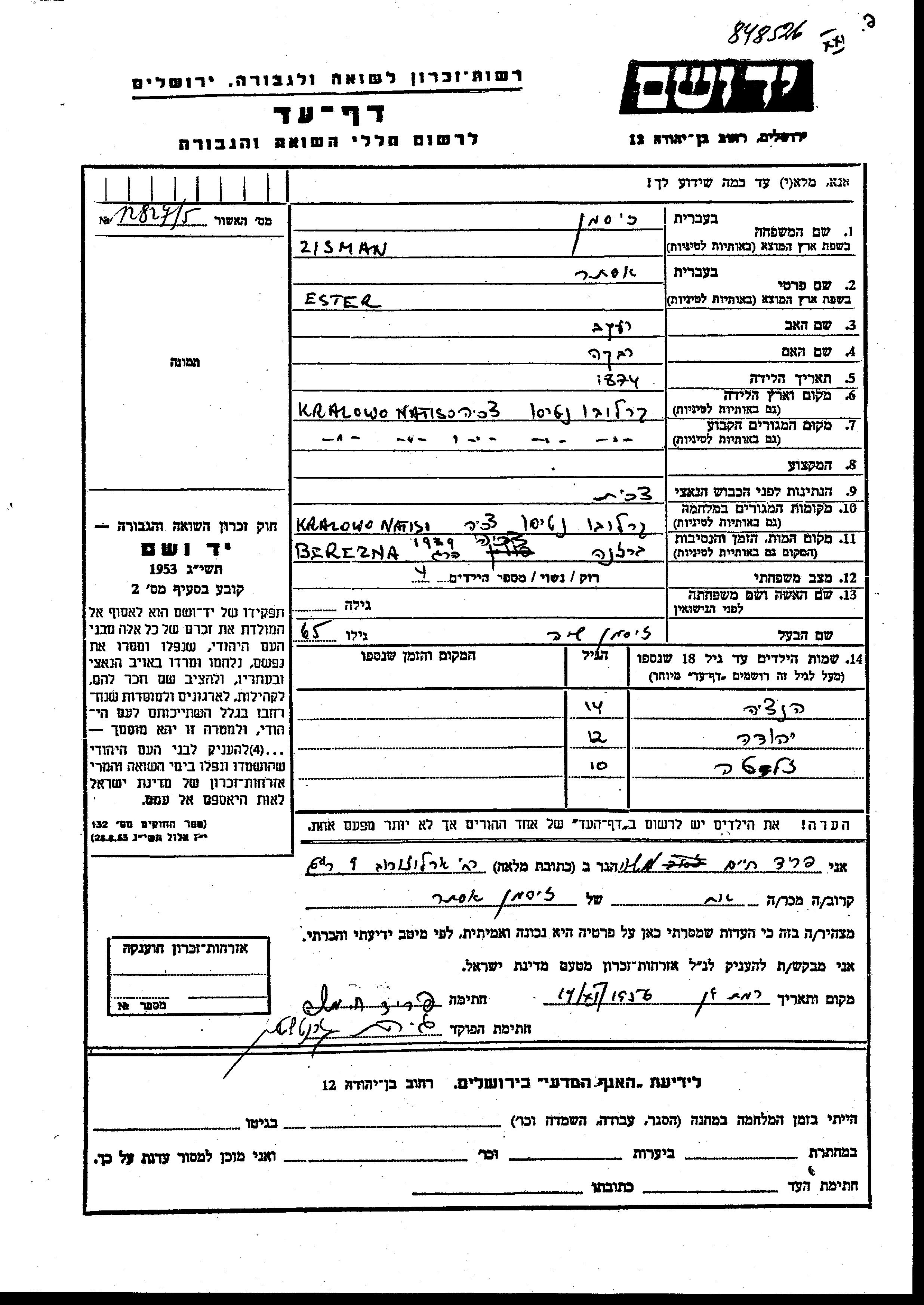 Ständiger Wohnsitz vor dem Krieg: Stadt/Ortschaft oder Bezirk/Region oder Land