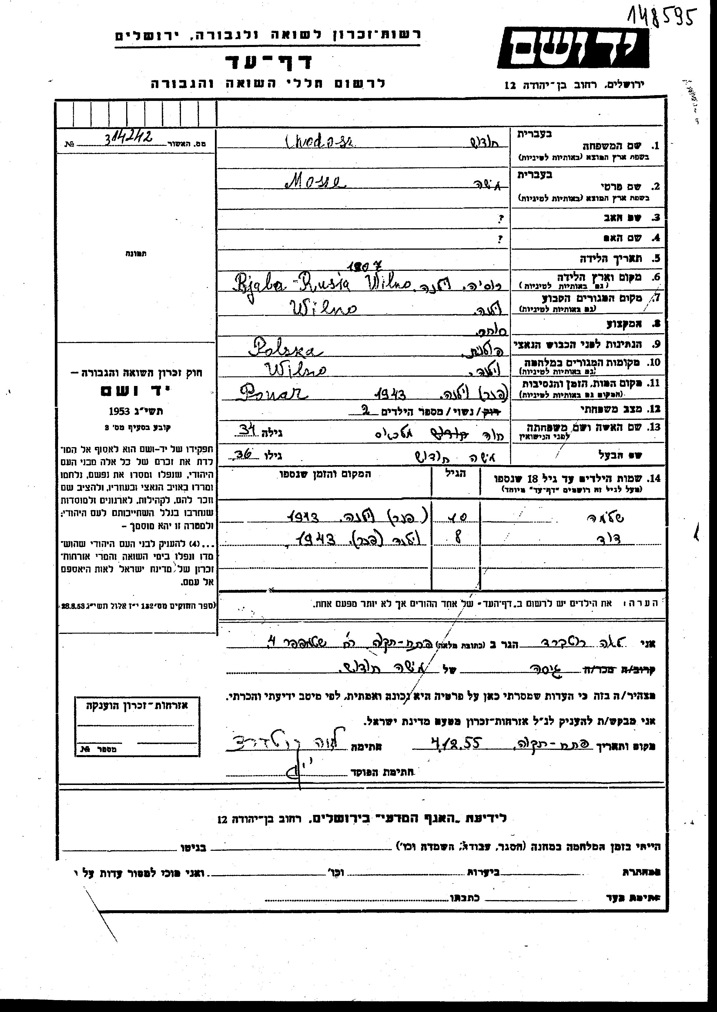 David Chodosz wurde Er war der Sohn von Mosze und Khava. Er war Kind. Vor dem Zweiten Weltkrieg lebte er in Wilno, Polen. Während des Krieges war er in Wilno, Polen.