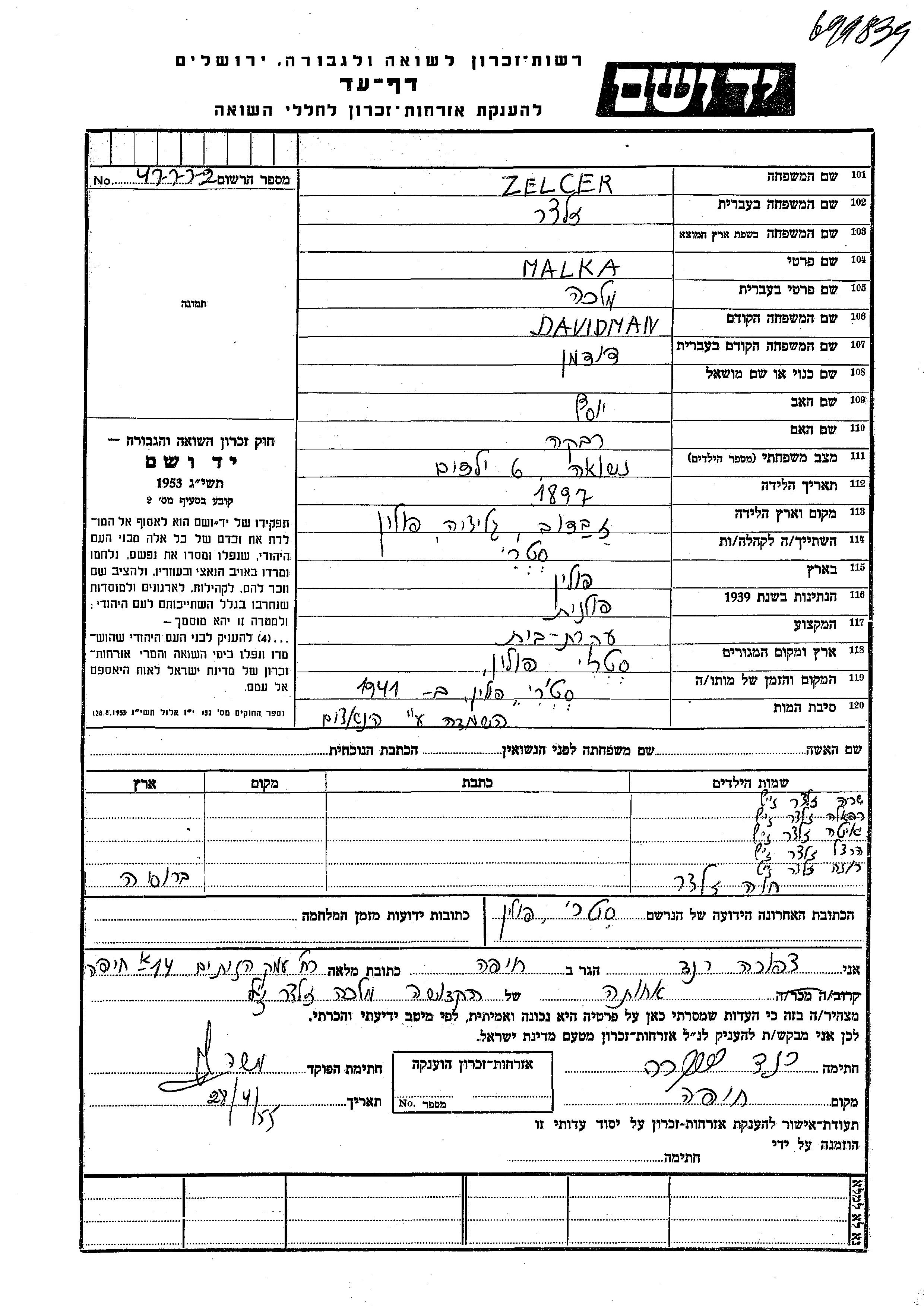 Rafaela Zelcer wurde Er/sie war der/ die Sohn/Tochter von Malka, geb. Davidman Dudman. Er/Sie war Kind. Vor dem Zweiten Weltkrieg er/sie in Stryj, Polen. Während des Krieges war er/sie in Stryj, Polen.