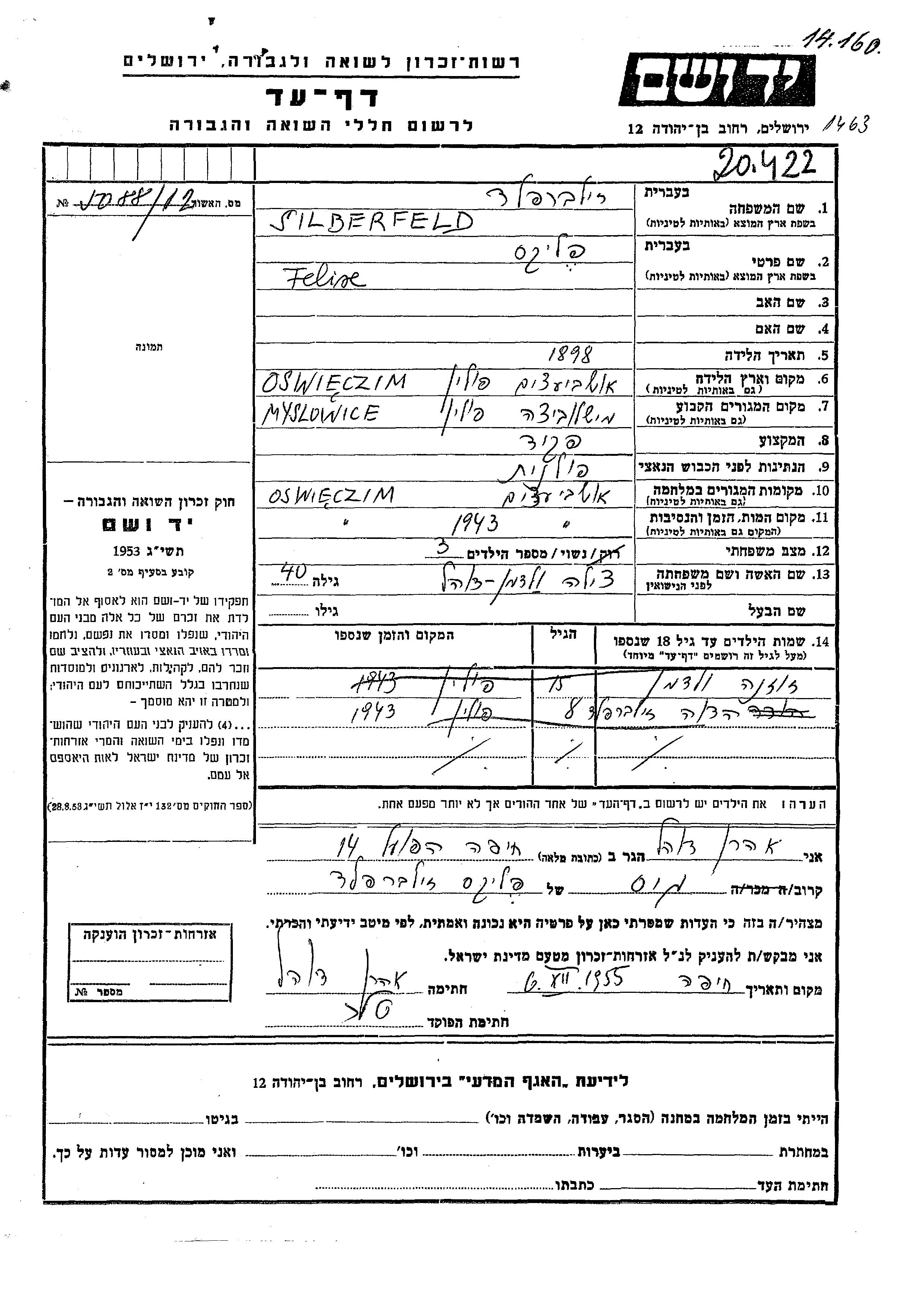 Zuzana Silberfeld wurde Sie war die Tochter von Felix und Tzila, geb. Valdman. Sie war Kind. Vor dem Zweiten Weltkrieg lebte sie in Myslowice, Polen. Während des Krieges war sie in Auschwitz, Polen.