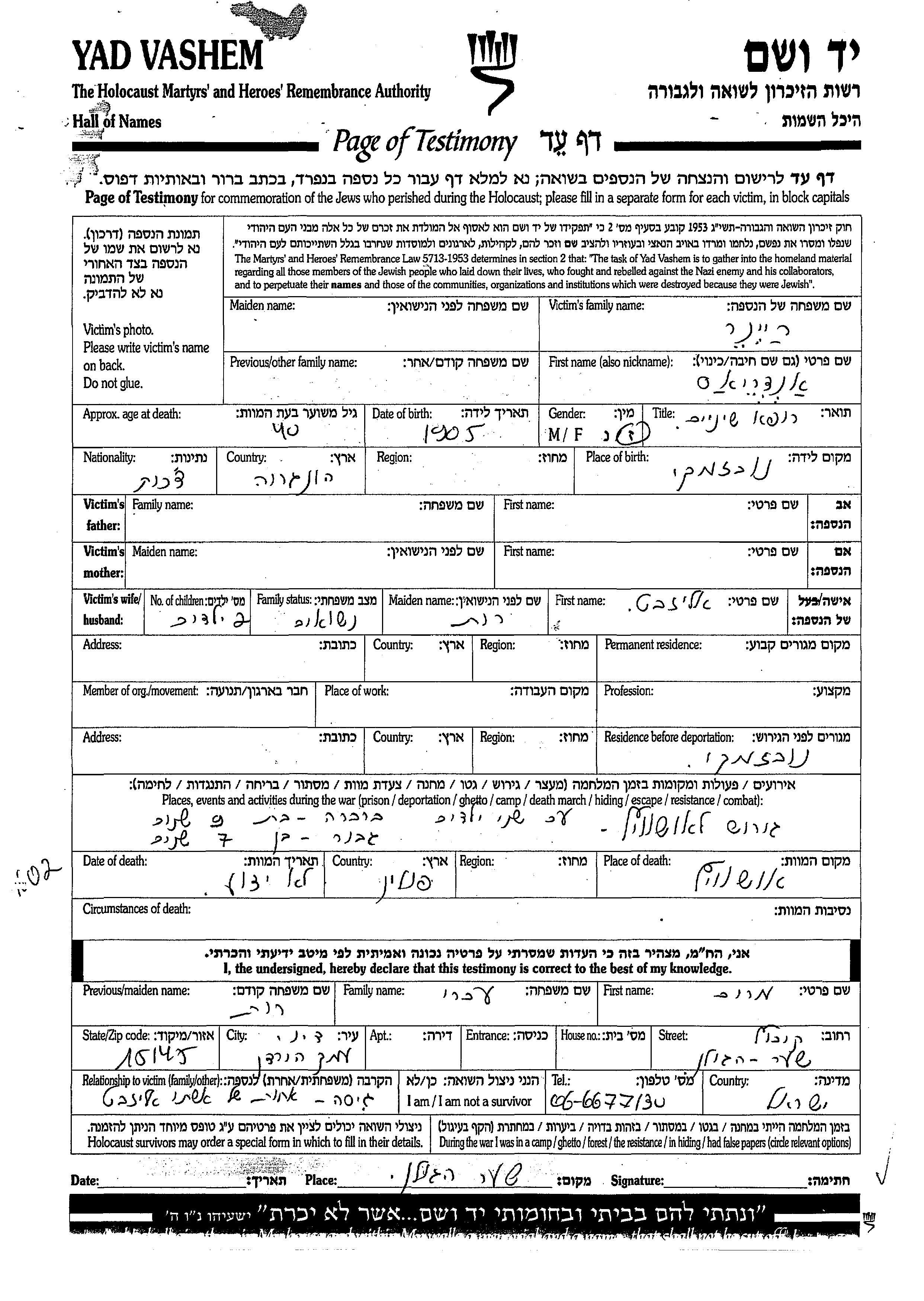 Gabor Reiner wurde Er war der Sohn von Andreas und Elizabet, geb. Rot. Er war Kind. Während des Krieges war er in Novi Zamki, Tschechoslowakei.