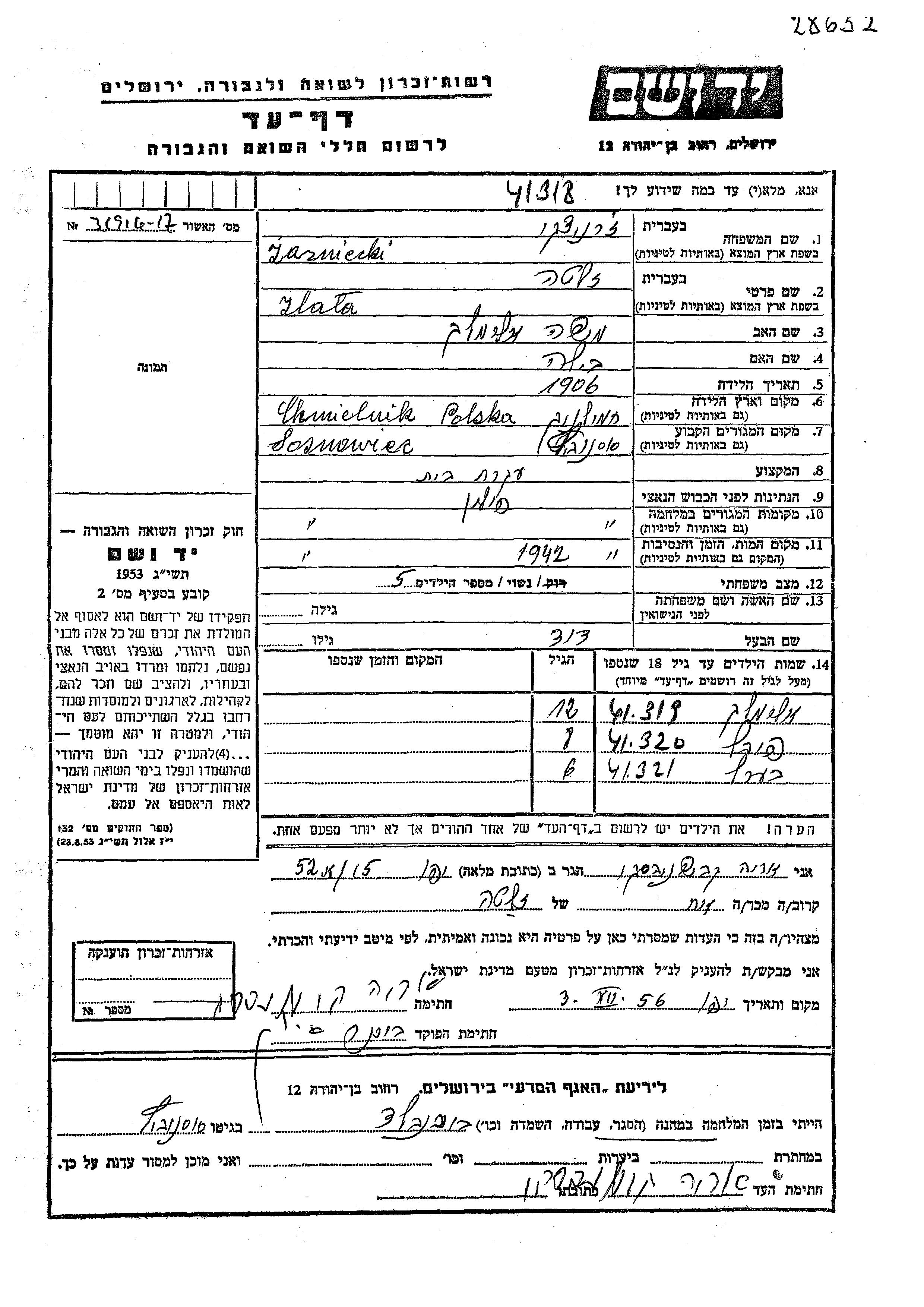 Feibel Zarniecki wurde Er war der Sohn von David und Zlata. Er war Kind. Vor dem Zweiten Weltkrieg lebte er in Sosnowice, Polen. Während des Krieges war er in Sosnowice, Polen.