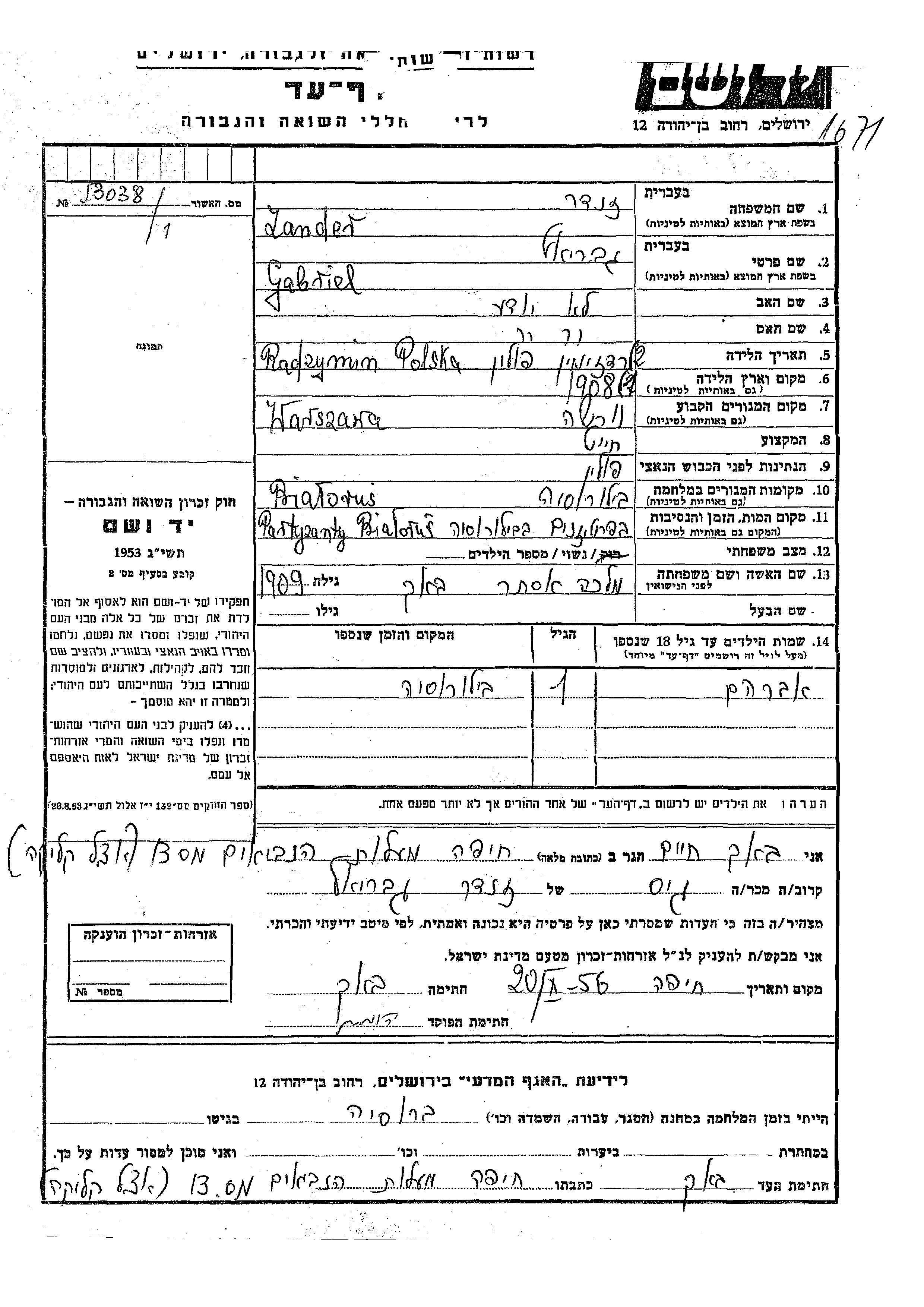 Zander Avraham Warsaw, Polen Gedenkblatt