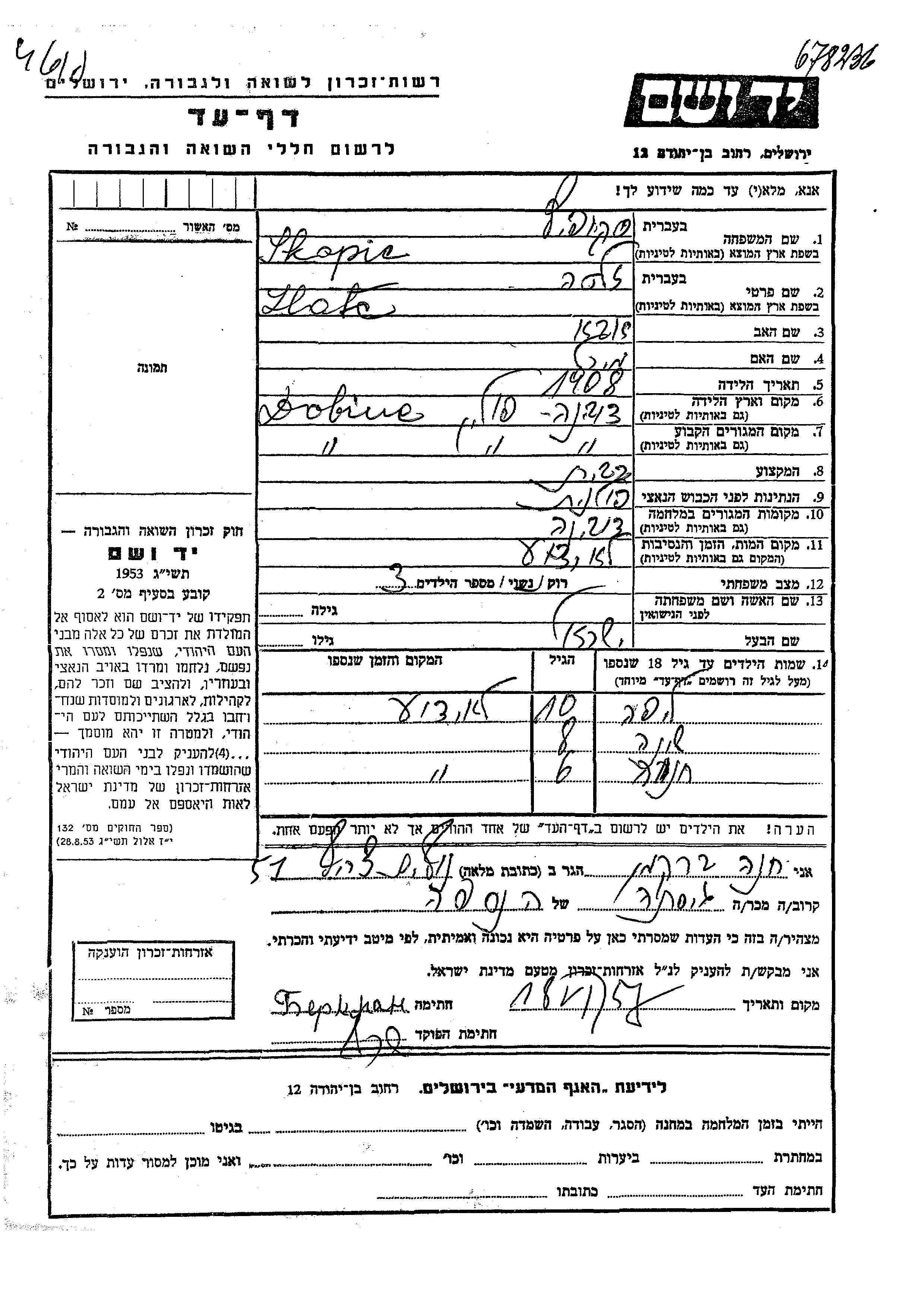 Khana Skopic wurde Sie war die Tochter von Yisrael und Zlate. Sie war Kind. Vor dem Zweiten Weltkrieg lebte sie in Dobine, Polen. Während des Krieges war sie in Dobine, Polen.