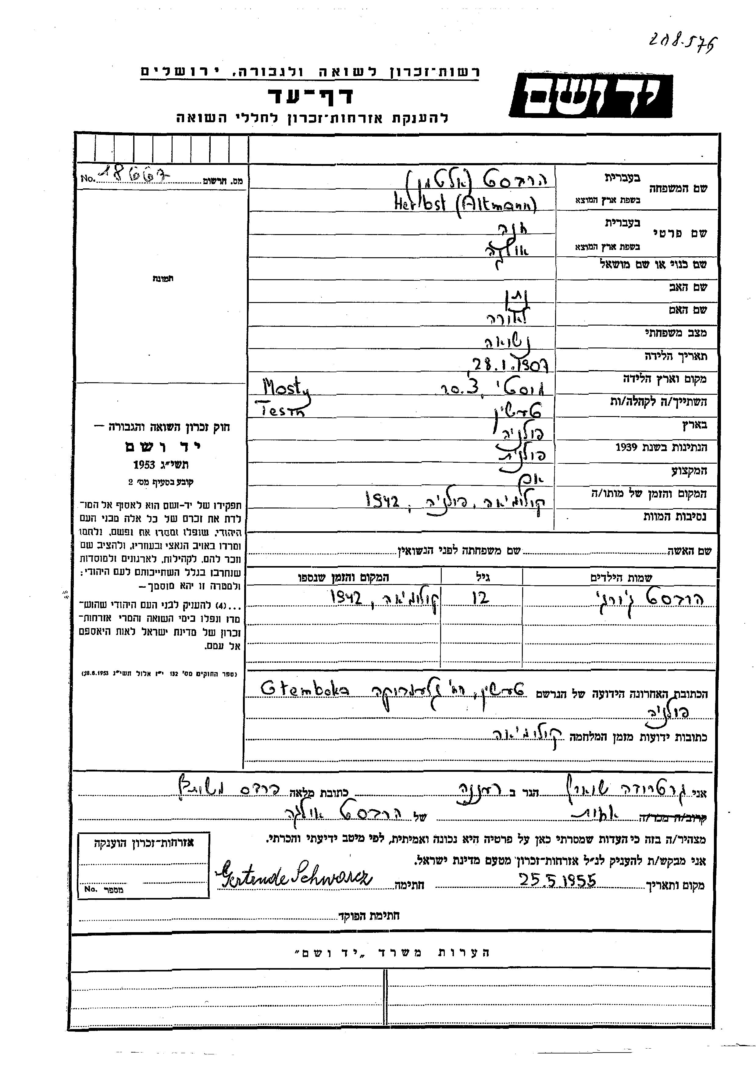 Dzhordzh Herbst wurde Er war der Sohn von Khana Olga, geb. Altmann. Er war Kind. Vor dem Zweiten Weltkrieg lebte er in Tesin, Tschechoslowakei. Während des Krieges war er in Kolomyja, Polen.