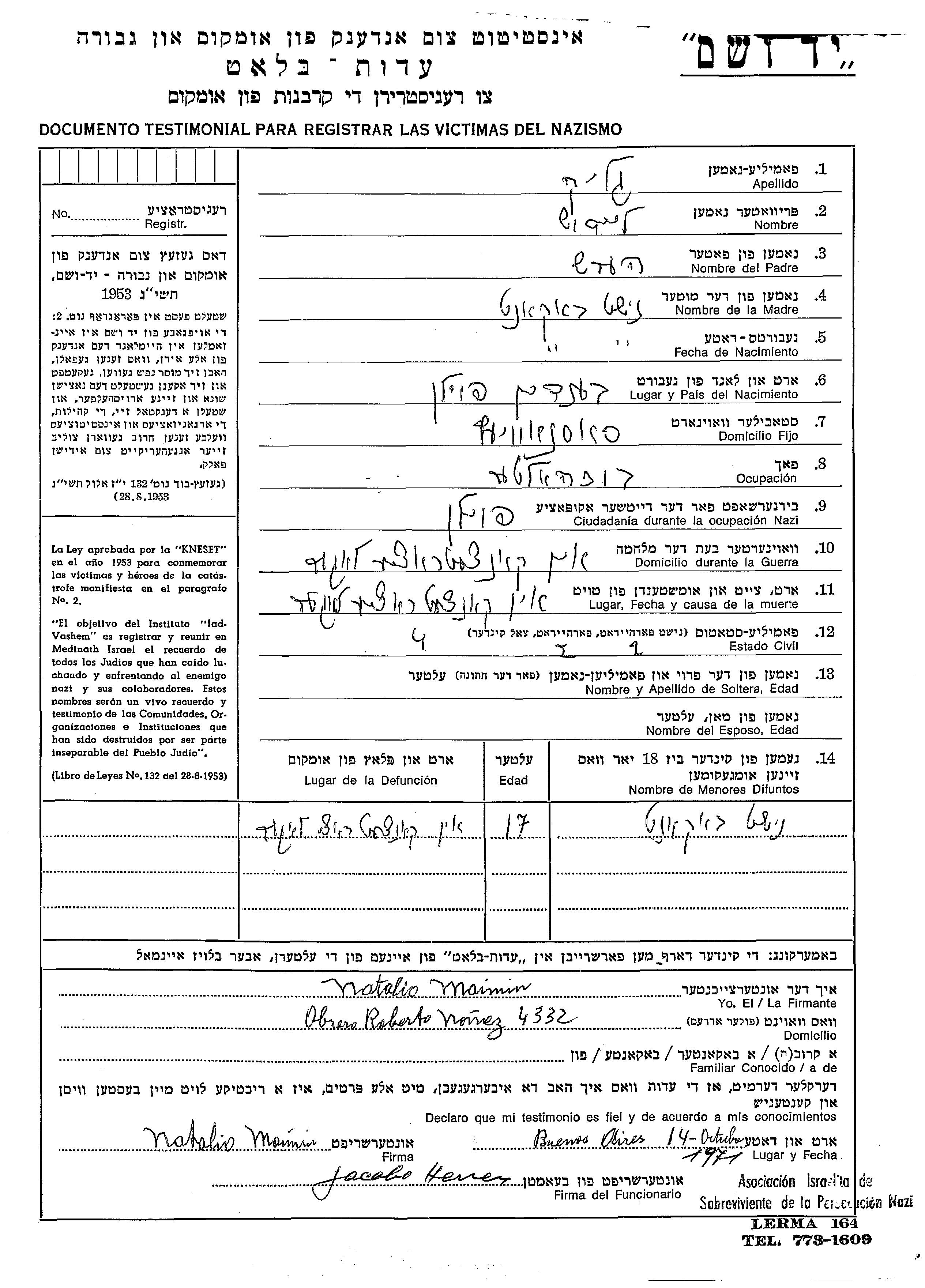 Leibish wurde in der Schoah ermordet.