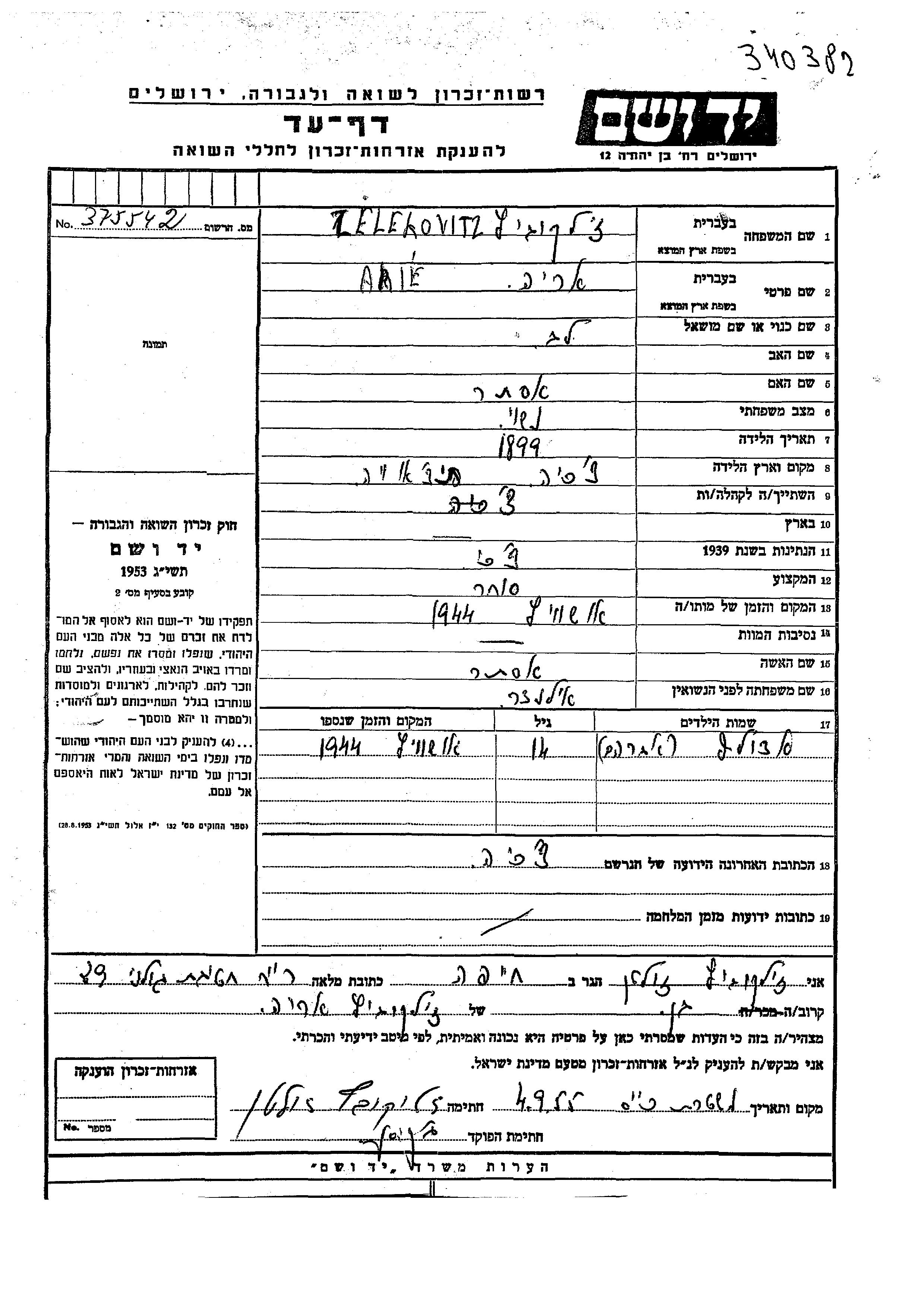 Adolf Avraham Zelikovitz wurde Er war der Sohn von Arie und Ester, geb. Ilander. Er war Kind. Vor dem Zweiten Weltkrieg lebte er in Tschechoslowakei. Während des Krieges war er in Tschechoslowakei.