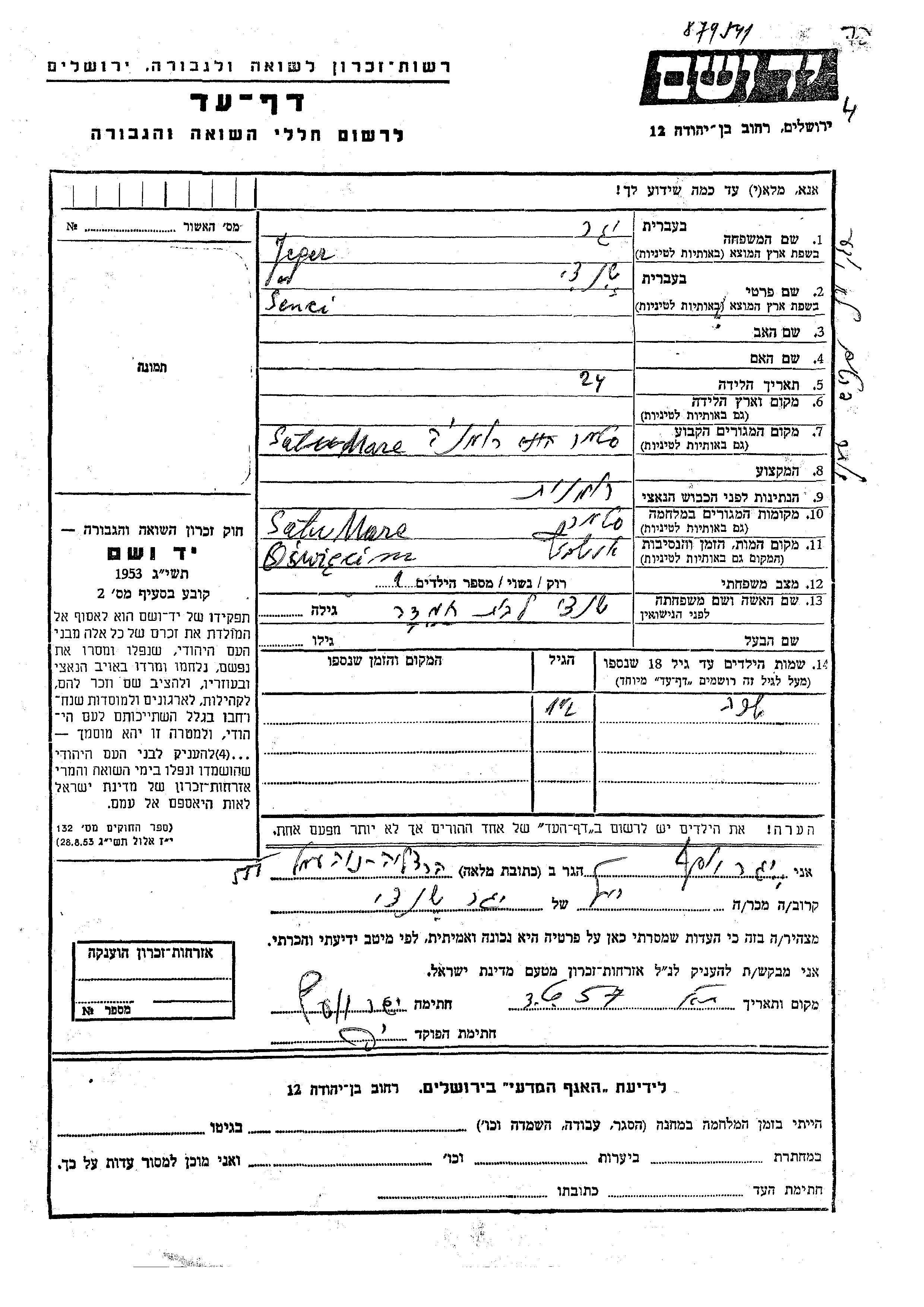 Jeger Sara Satu Mare, Rumänien Gedenkblatt