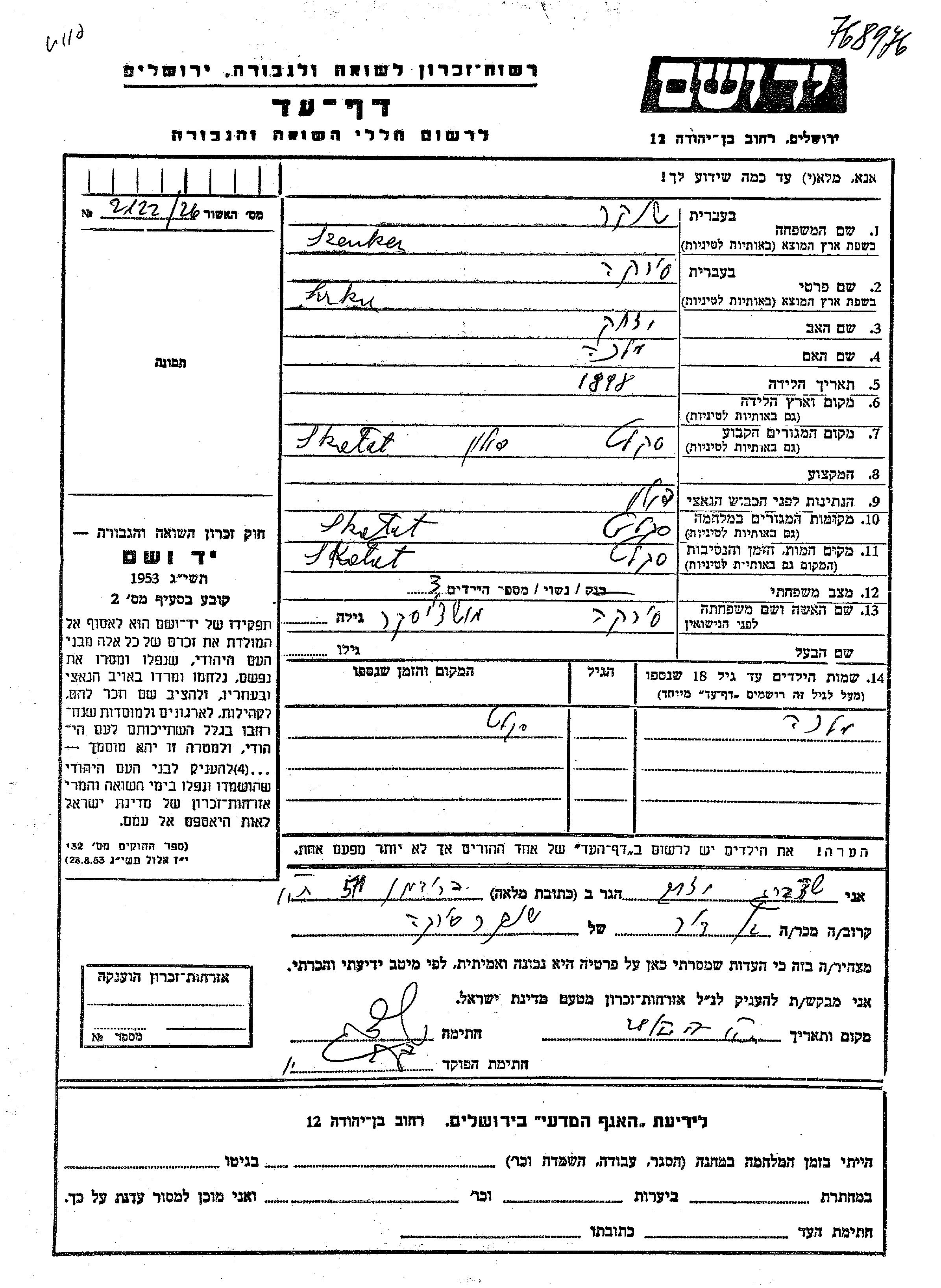 Malka Szenker wurde Sie war die Tochter von Sirka, geb. Moshchisker. Sie war Kind. Vor dem Zweiten Weltkrieg lebte sie in Skalat, Polen. Während des Krieges war sie in Skalat, Polen.