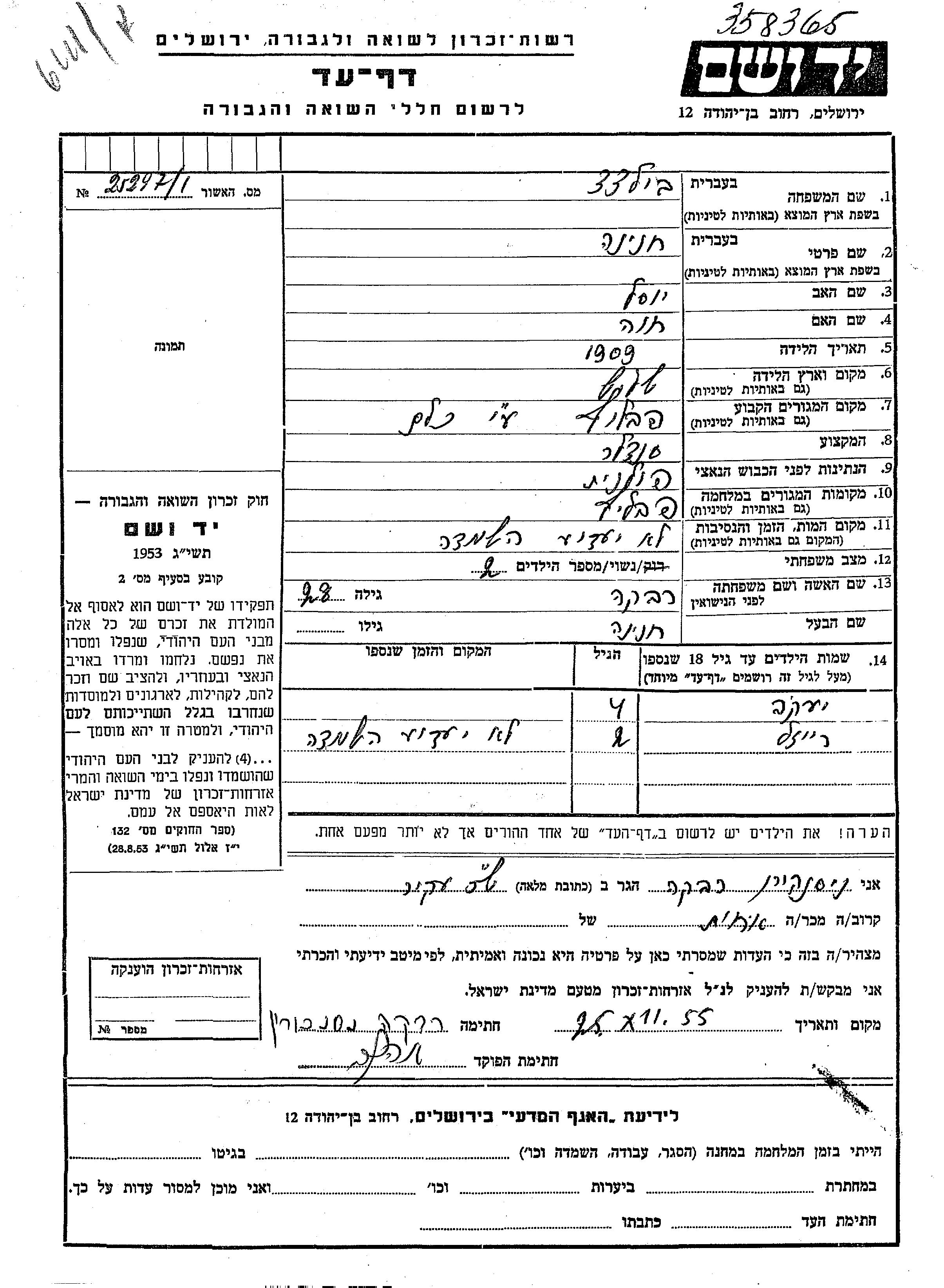 Yaakov Bilchech wurde Er war der Sohn von Khanina und Rivka. Er war Kind. Vor dem Zweiten Weltkrieg lebte er in Pavlitz, Polen. Während des Krieges war er in Pavlitz, Polen.