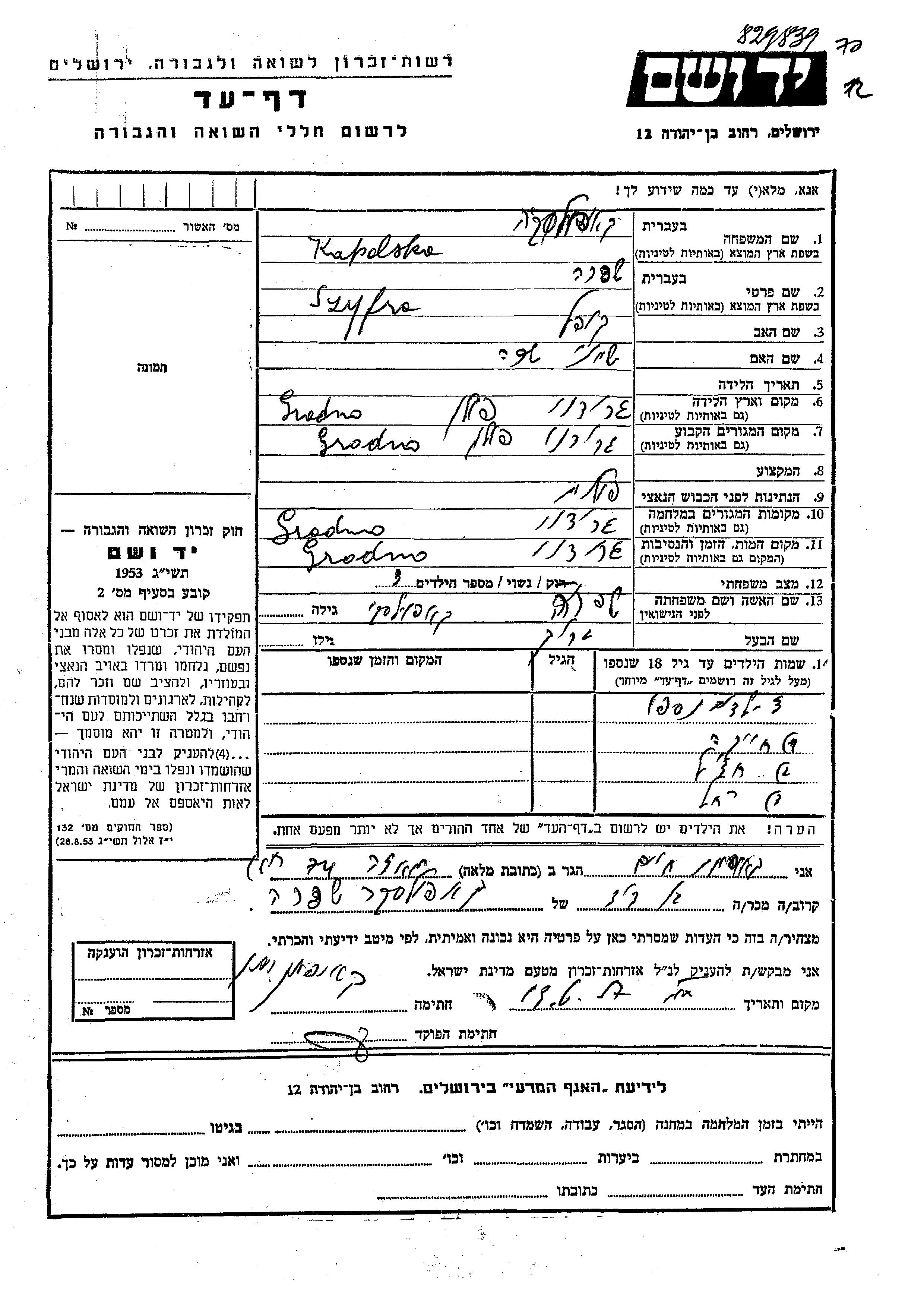 Suche nach einem Todesjahr im Zeitraum der Holocaust: 1933 bis 1945. Bitte wählen Sie 'Exakt' im Auswahlmenü, um nur nach einem einzelnen Jahr zu suchen, alternativ können Sie die flexibleren Optionen '+/- 2 Jahre' oder '+/- 5 Jahre' wählen.