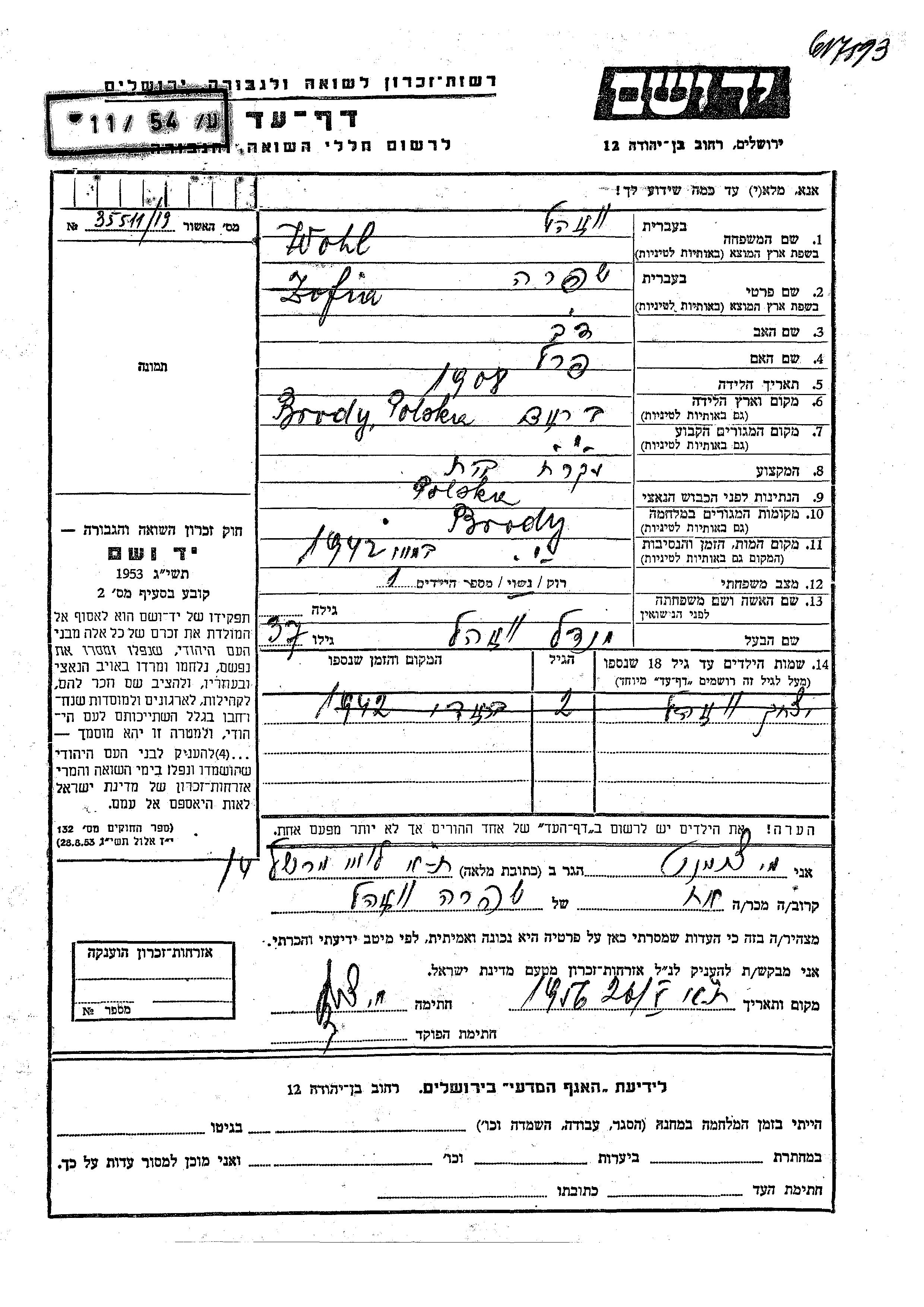 Yitzkhak Wohl wurde Er war der Sohn von Mendel und Szifra. Er war Kind. Vor dem Zweiten Weltkrieg lebte er in Brody, Polen. Während des Krieges war er in Brody, Polen.