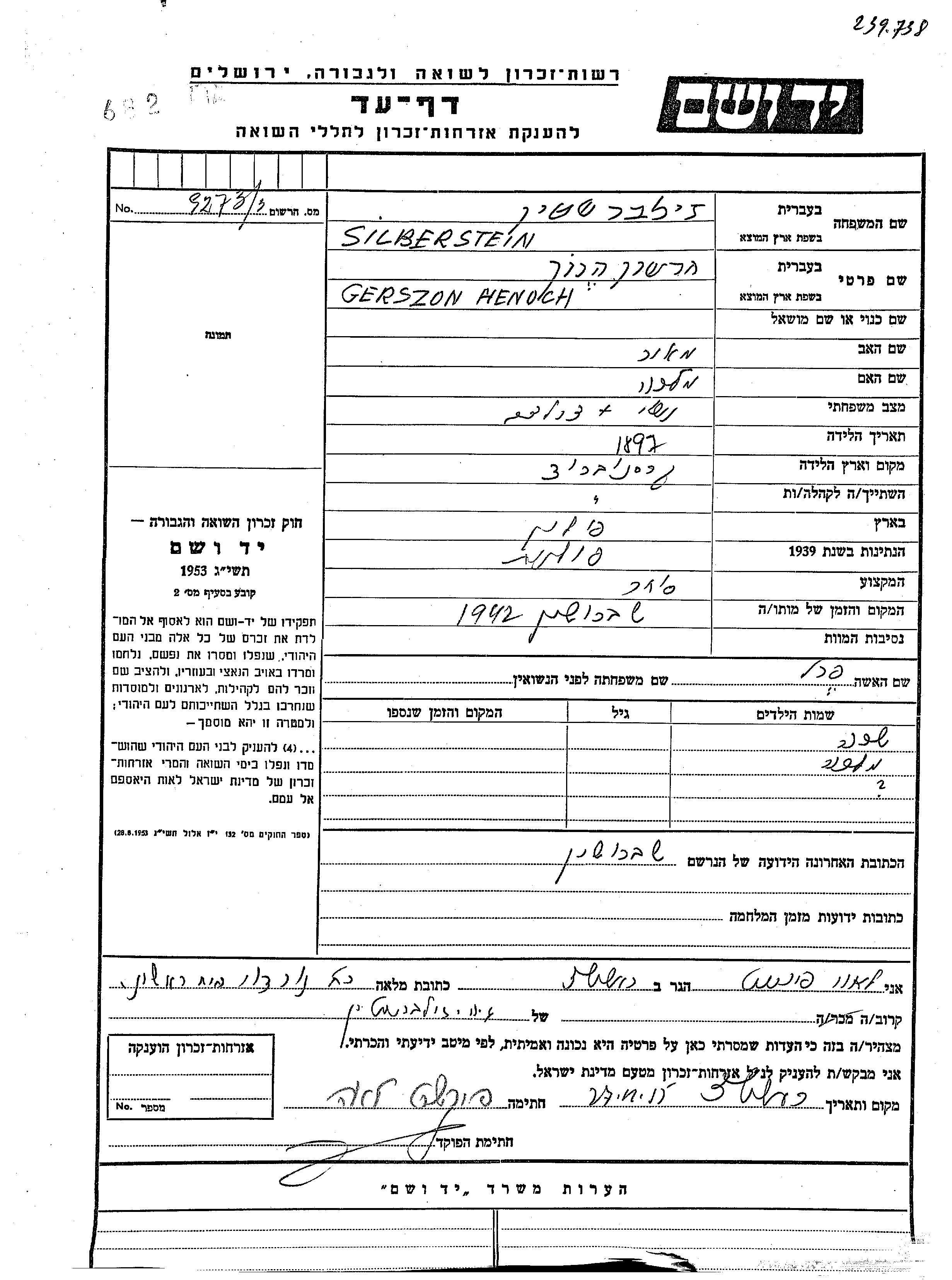 Malka Silberstein wurde Sie war die Tochter von Gerszon Henoch und Perel. Sie war Kind. Vor dem Zweiten Weltkrieg lebte sie in Krasnobrod, Polen. Während des Krieges war sie in Szczebrzeszyn, Polen.