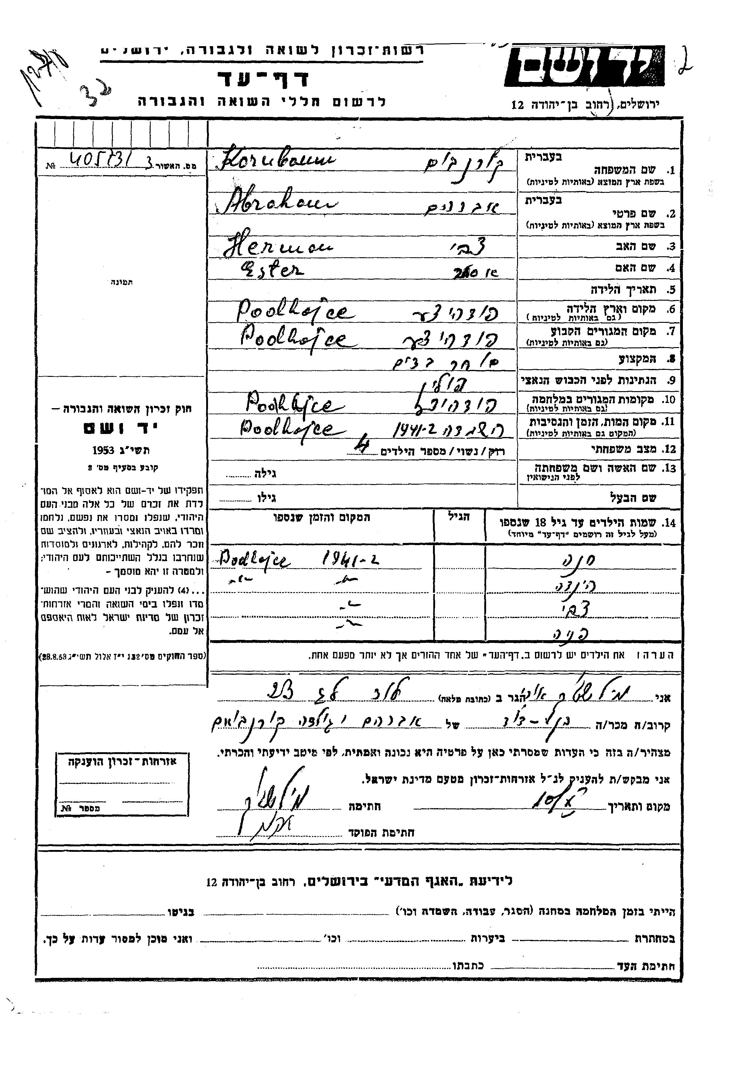 Khana Kornbaum wurde Sie war die Tochter von Abraham. Sie war Kind. Vor dem Zweiten Weltkrieg lebte sie in Podhajczyki, Polen. Während des Krieges war sie in Podhajczyki, Polen.