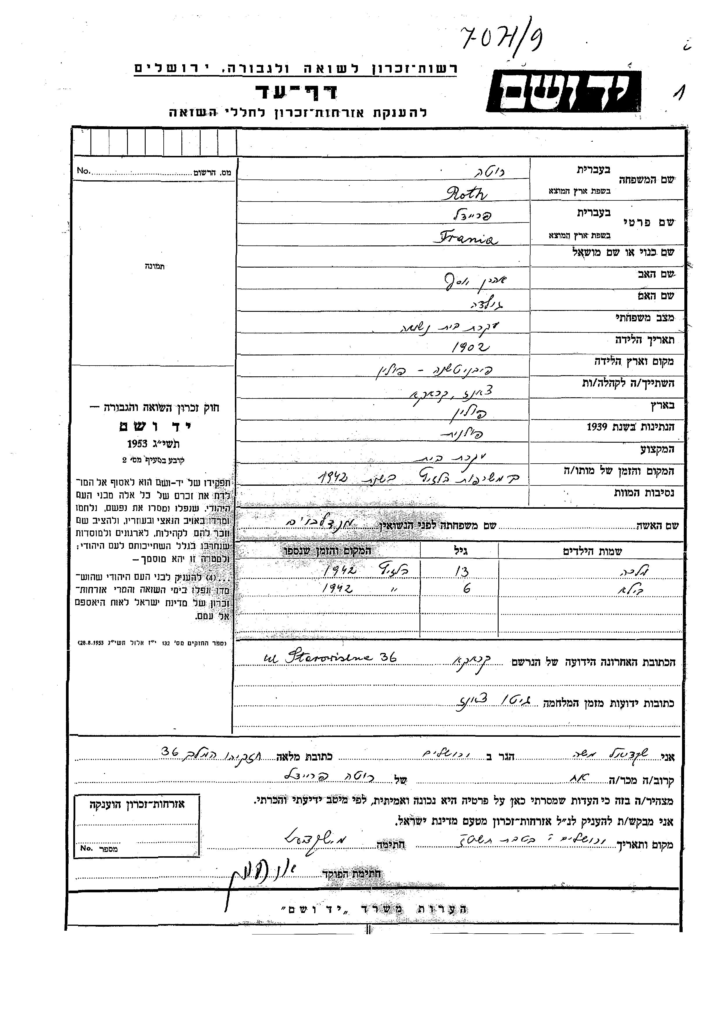 Jeder Aufenthaltsort während der Kriegsjahre: Stadt/Ortschaft oder Bezirk/Region oder Land