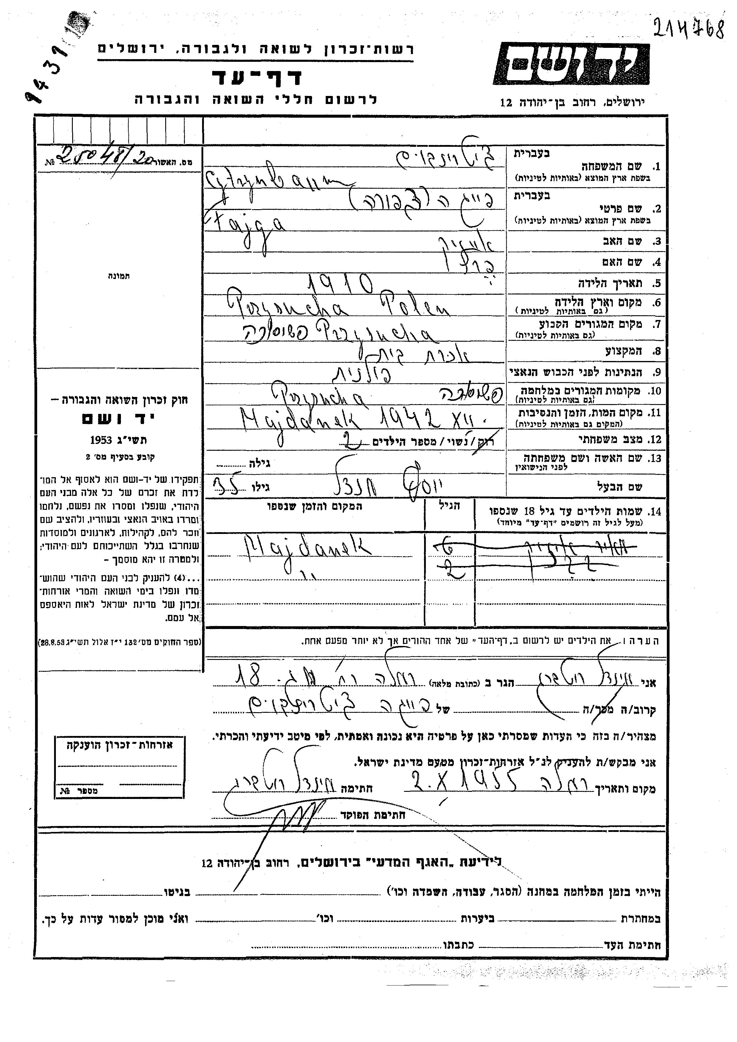 Cytrynbaum Vorname unbekannt Przysucha, Polen Gedenkblatt