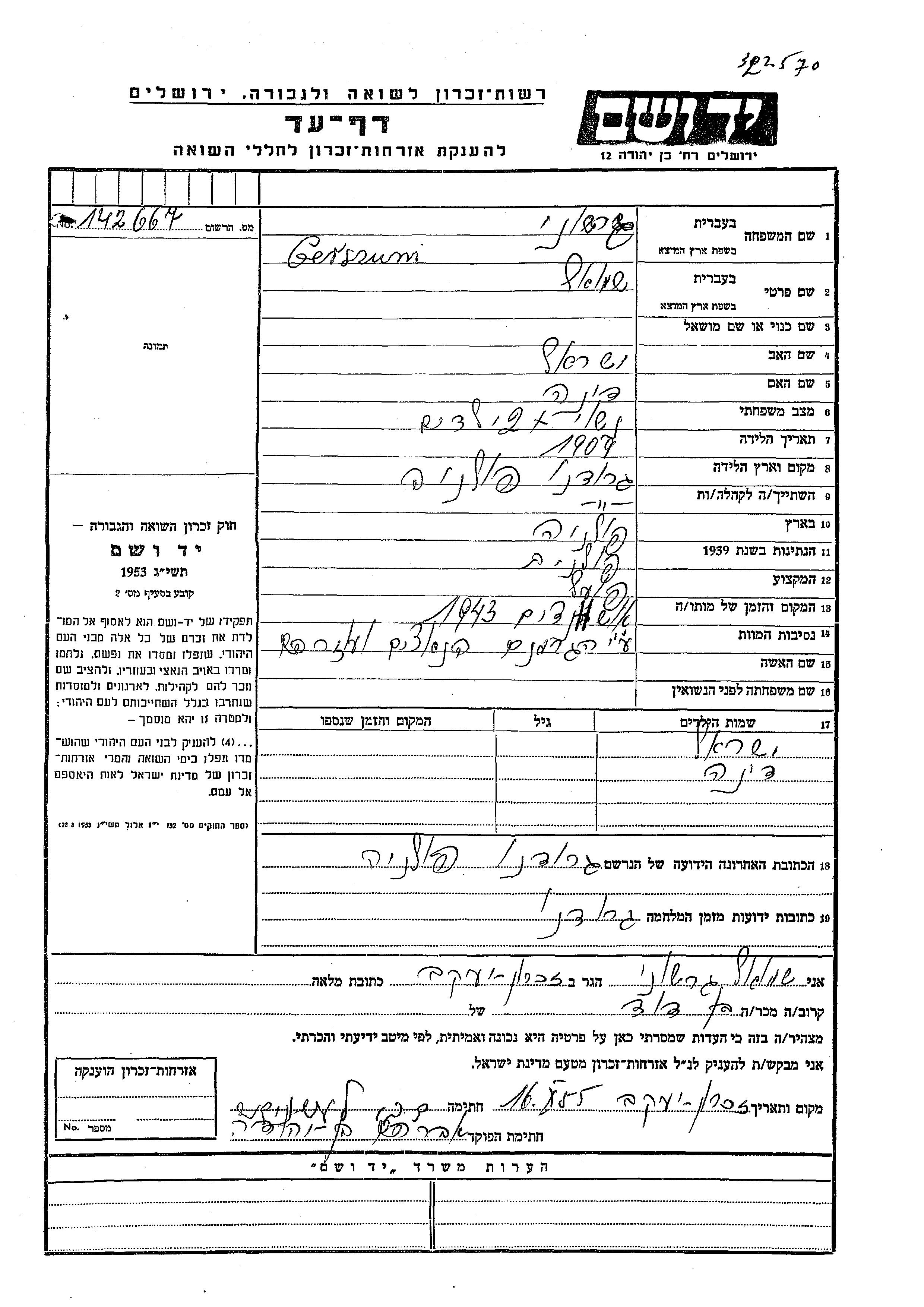 Dina Gersuny wurde Sie war die Tochter von Shmuel. Sie war Kind. Vor dem Zweiten Weltkrieg lebte sie in Grodno, Polen. Während des Krieges war sie in Grodno, Polen.