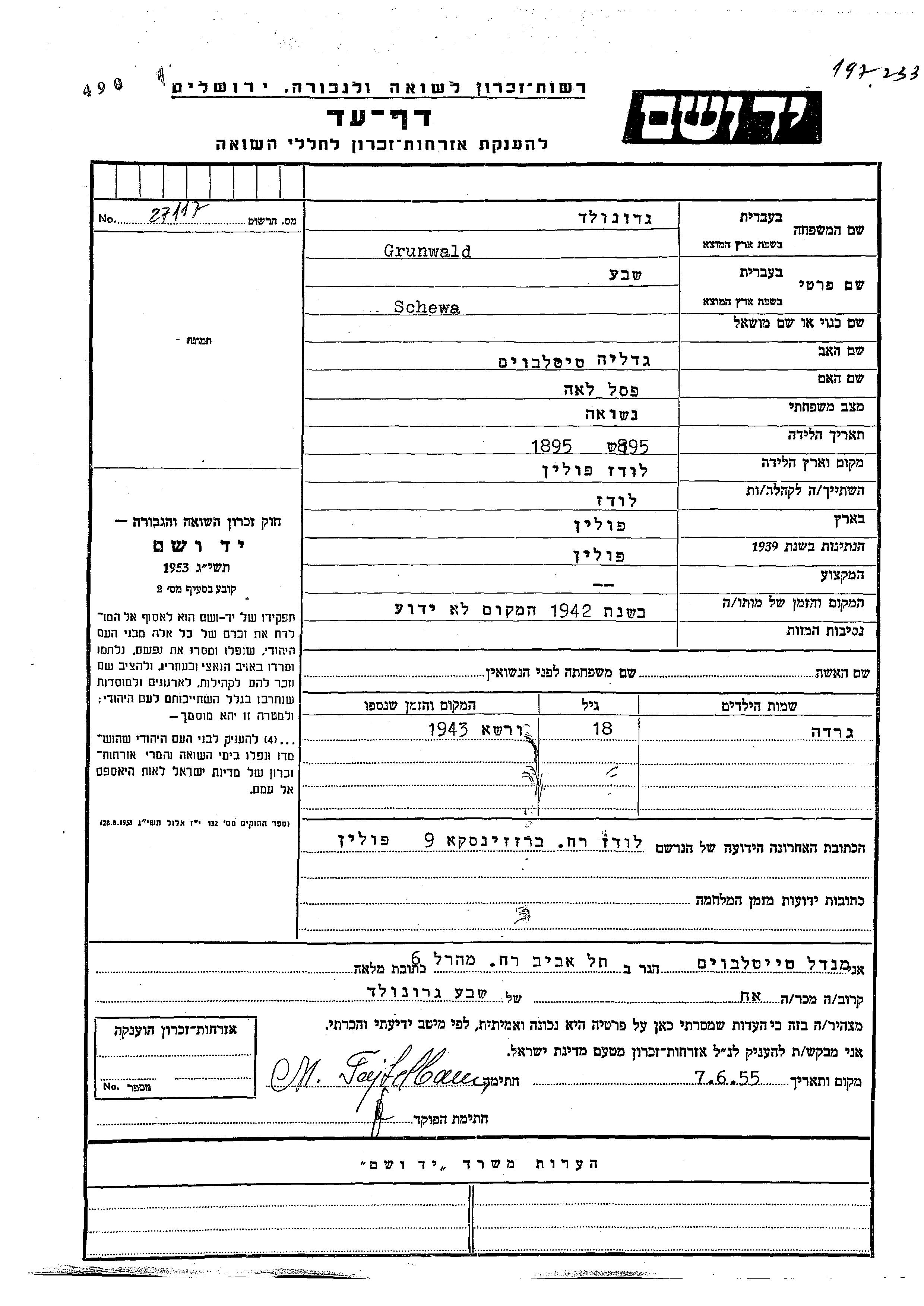 Gerda Grunwald wurde Er/sie war der/ die Sohn/Tochter von Schewa, geb. Teitelbaum. Er/Sie war Kind. Vor dem Zweiten Weltkrieg er/sie in Lodz, Polen. Während des Krieges war er/sie in Lodz, Polen.