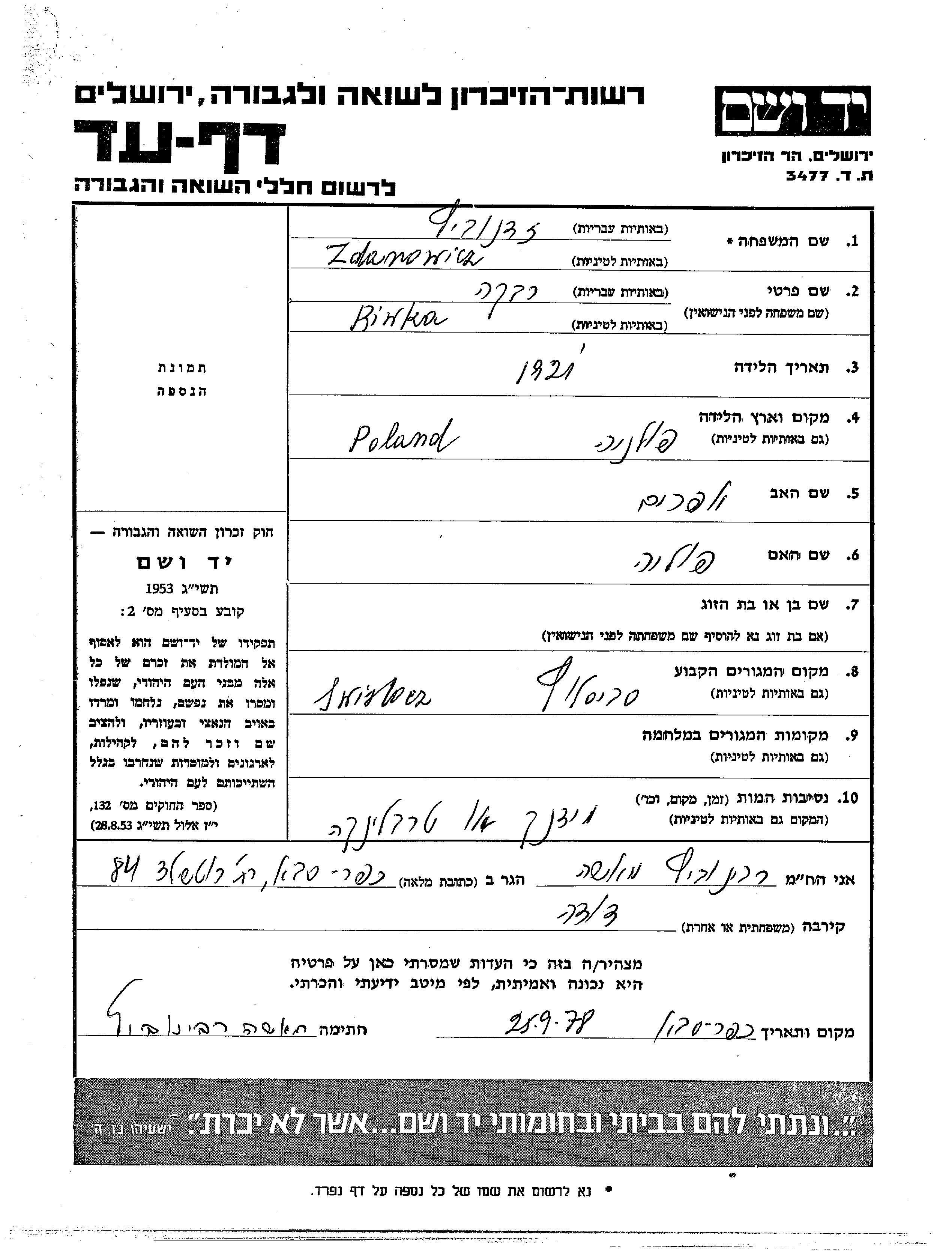 Riwka wurde in der Schoah ermordet. Todesort: Majdanek, Polen.