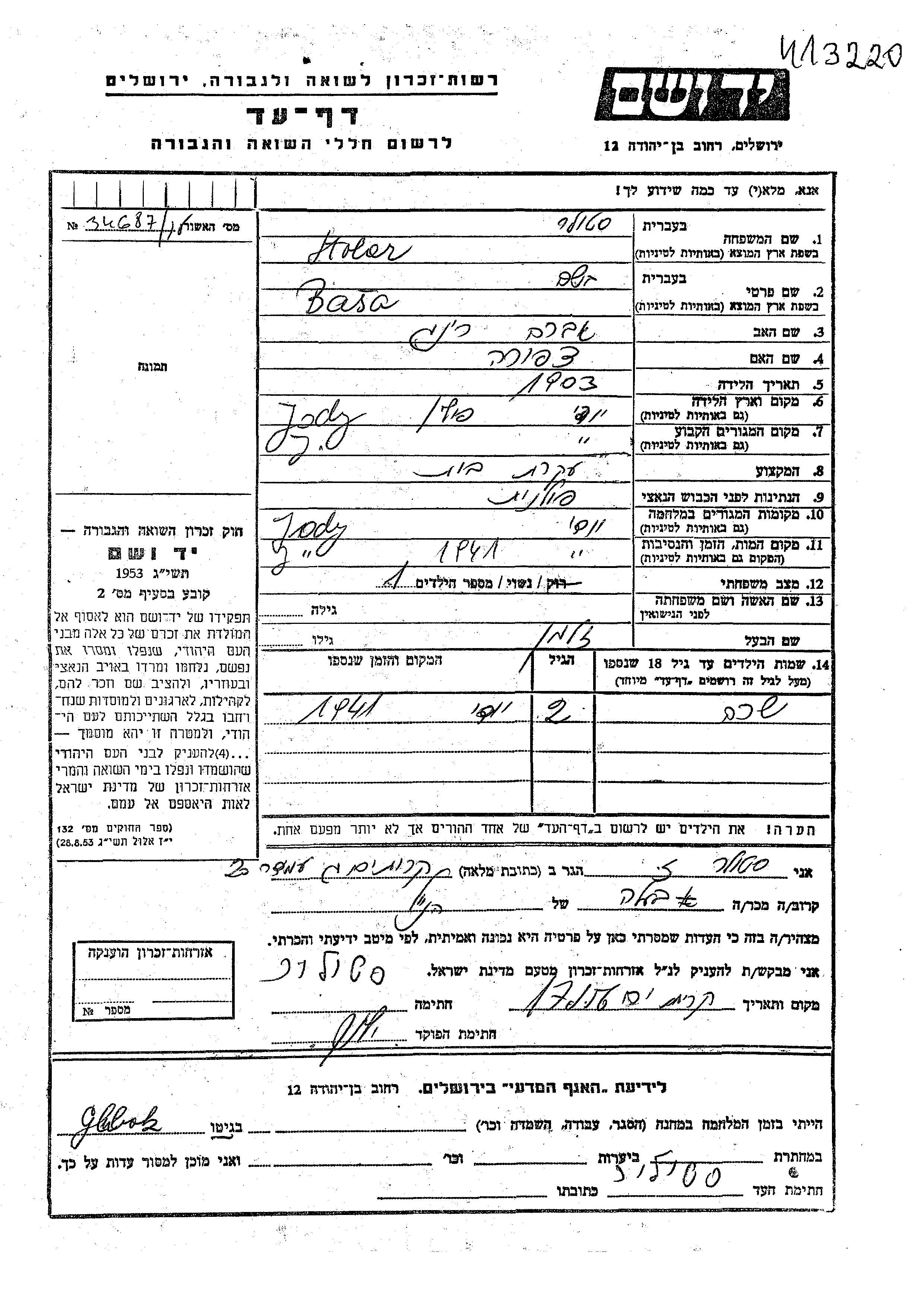 Sara Stolar wurde Sie war die Tochter von Zalman und Basha, geb. Ring. Sie war Kind. Vor dem Zweiten Weltkrieg lebte sie in Jody, Polen. Während des Krieges war sie in Jody, Polen.