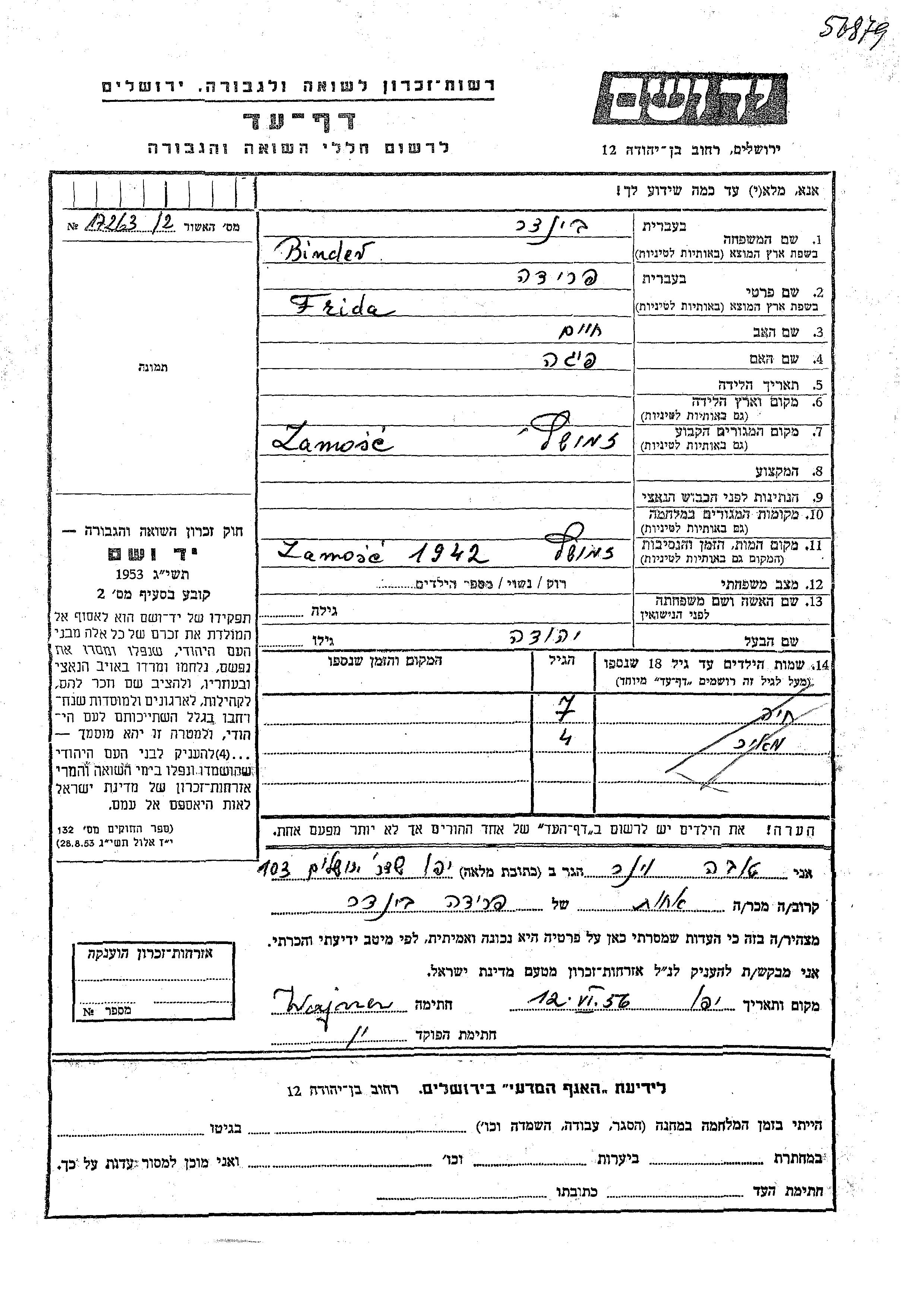 Khaia Binder wurde Sie war die Tochter von Yehuda und Frida. Sie war Kind. Vor dem Zweiten Weltkrieg lebte sie in Zamosc, Polen.