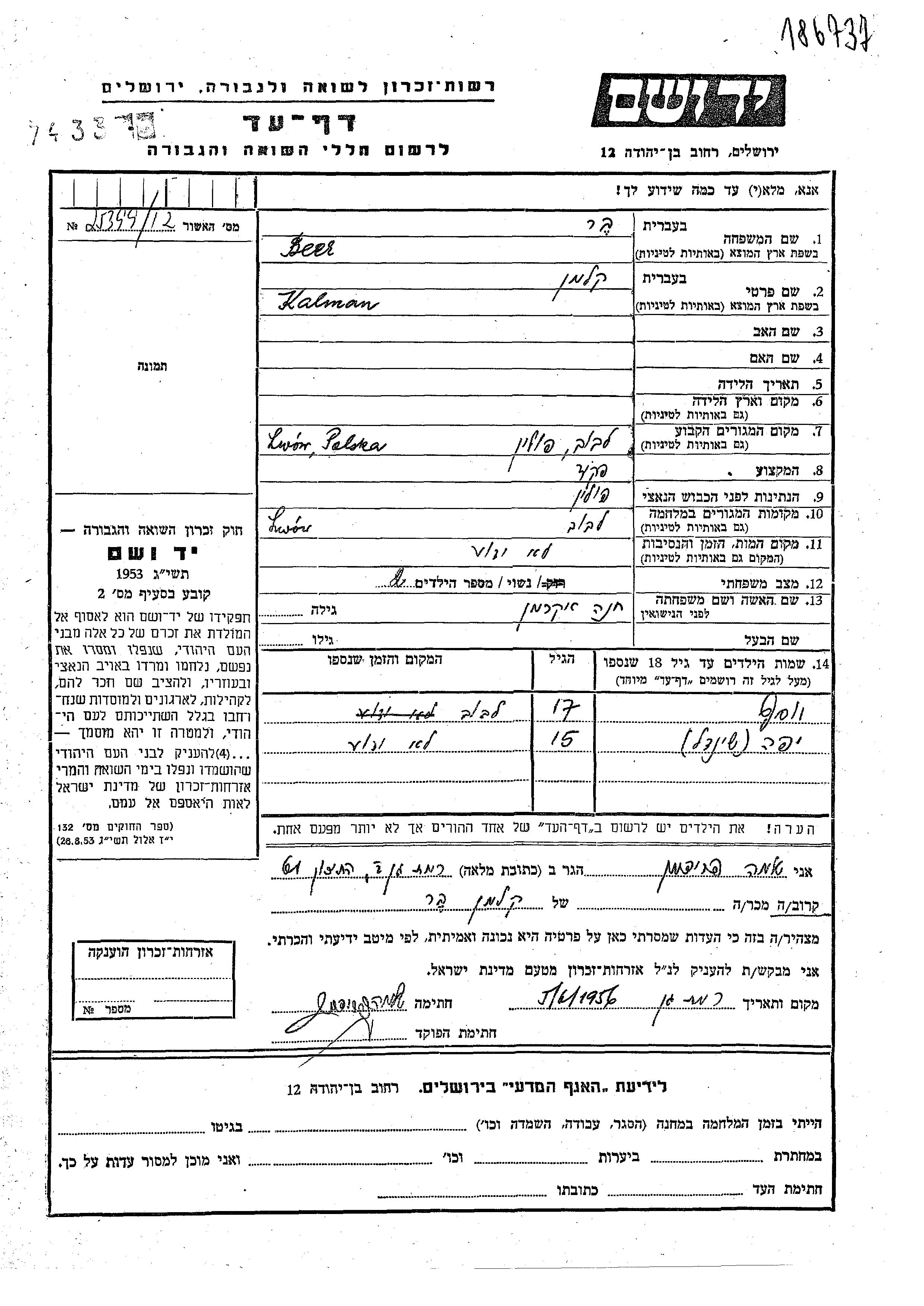 Yosef Beer wurde Er war der Sohn von Kalman und Khana, geb. Akerman. Er war Kind. Vor dem Zweiten Weltkrieg lebte er in Levov, Polen. Während des Krieges war er in Levov, Polen.