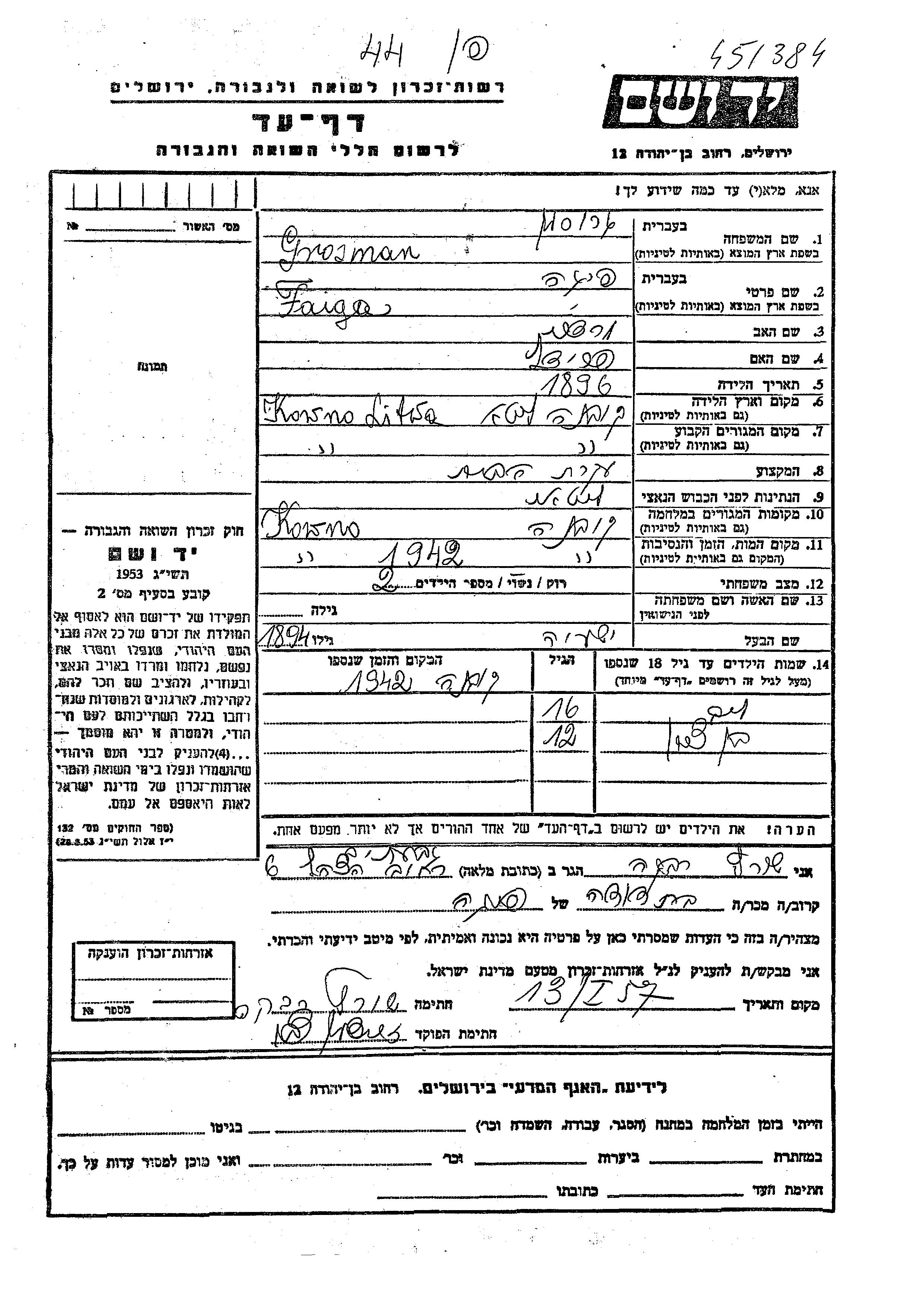 Leib Grosman wurde Er war der Sohn von Yeshiyah und Faiga. Er war Kind. Vor dem Zweiten Weltkrieg lebte er in Kowno, Litauen. Während des Krieges war er in Kowno, Litauen.
