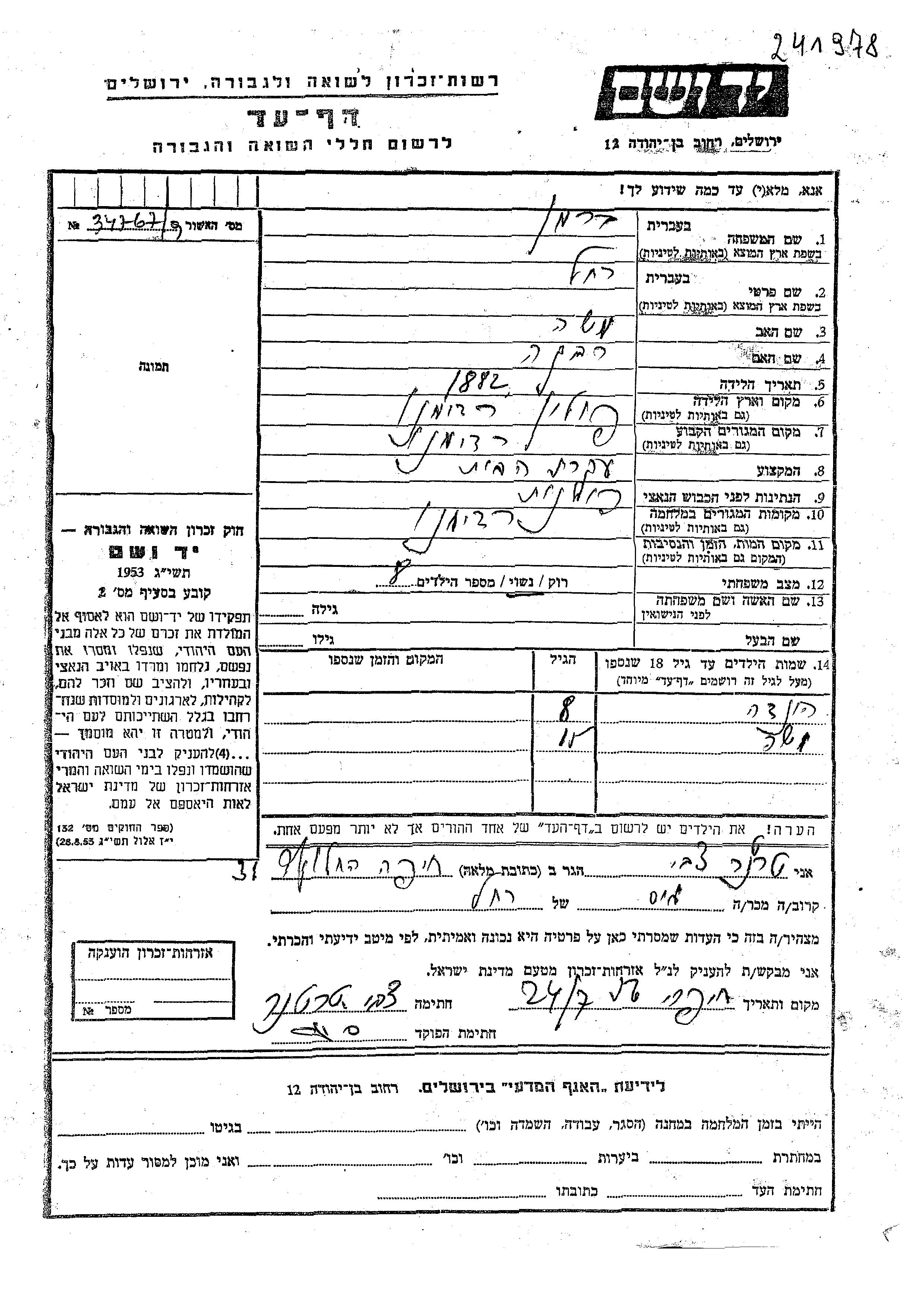 Yad Vashem - Gedenkblätter Sammlung