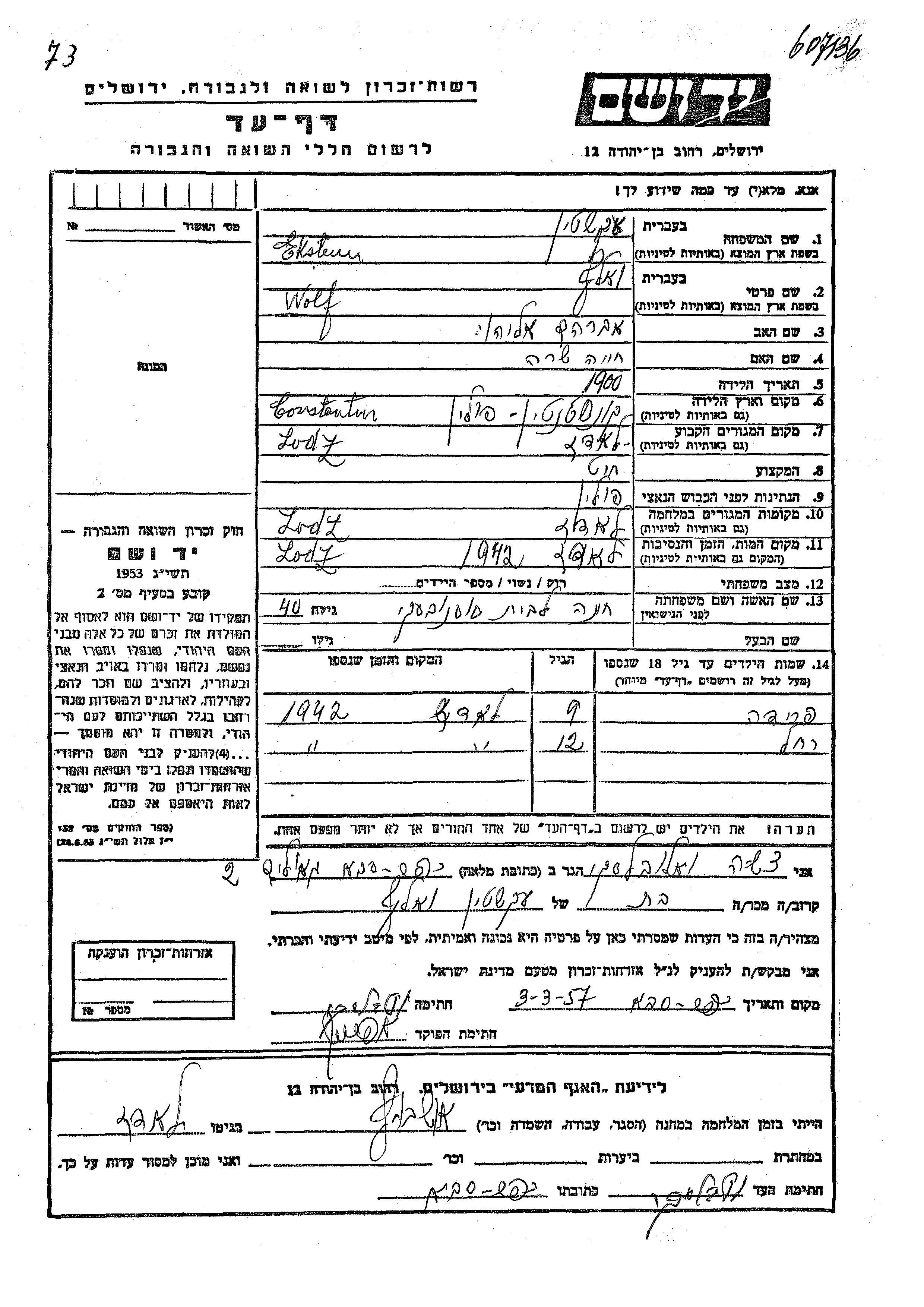 Frida Ekstein wurde Sie war die Tochter von Wolf und Khana, geb. Sosnovski. Sie war Kind. Vor dem Zweiten Weltkrieg lebte sie in Lodz, Polen. Während des Krieges war sie in Lodz, Polen.